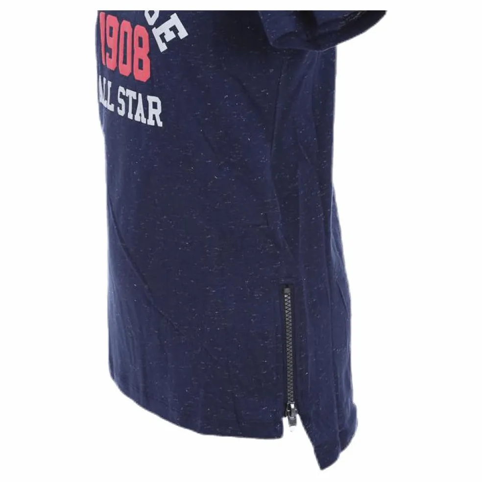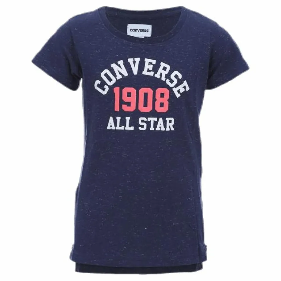 T-shirt med stort print på bröstet, slits nedtill och något längre bakstycke, 98% bomull, 2% angelina.