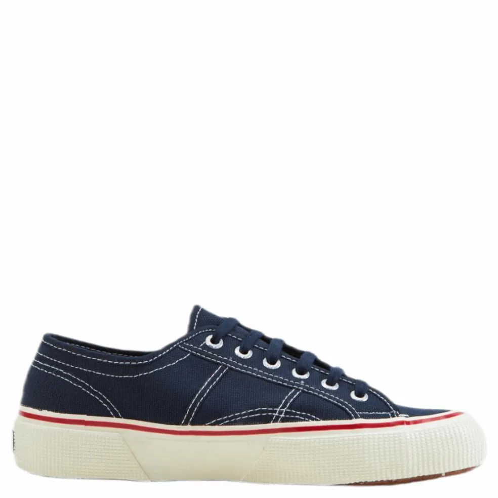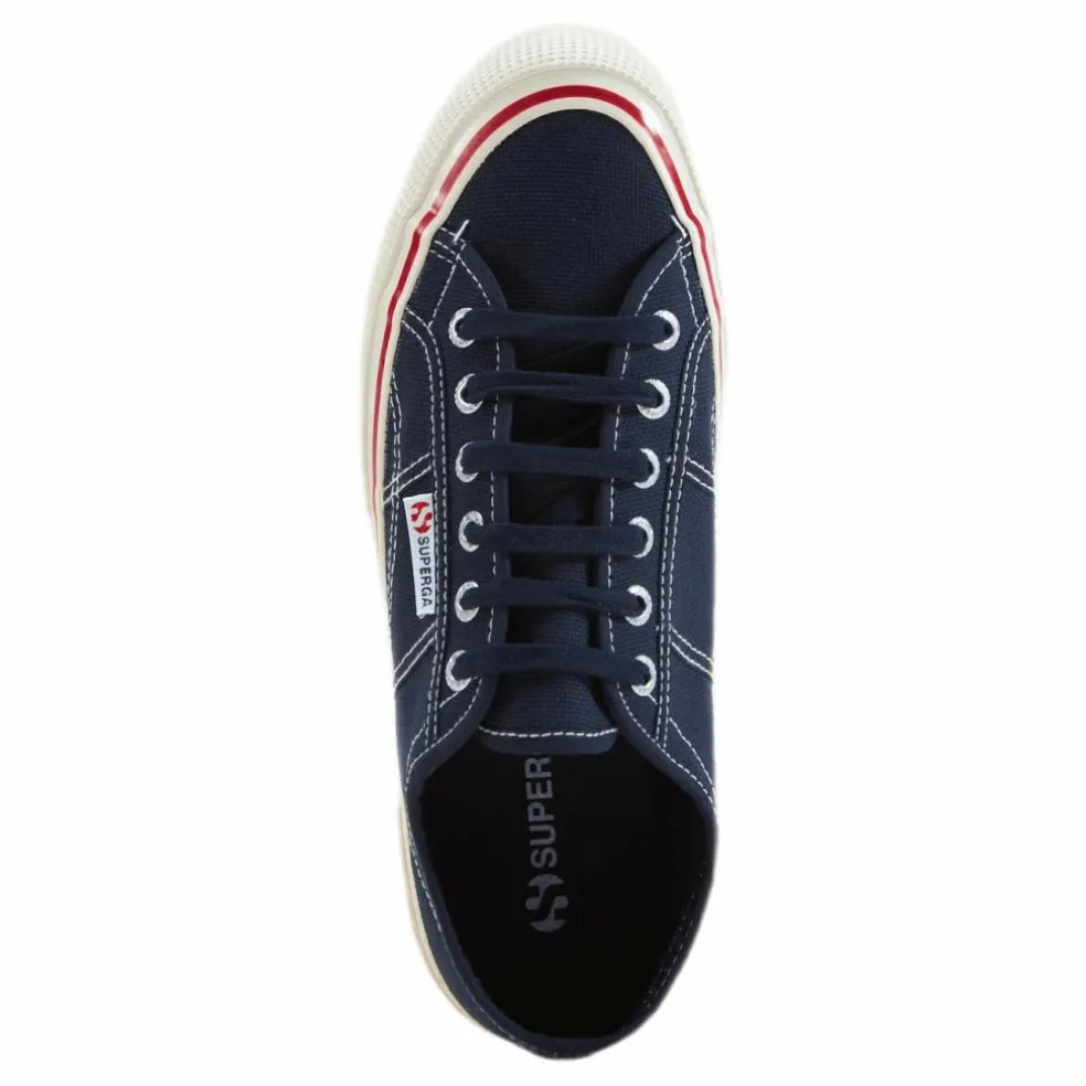 2490 Bold är en Superga-sneaker med låg topp i blå färg med ovandel i mocka, foder i canvas och yttersula i gummi. Denna stil har den klassiska vita Superga-logotypen på sidan och har reflekterande 3M-rör för ökad synlighet på natten.