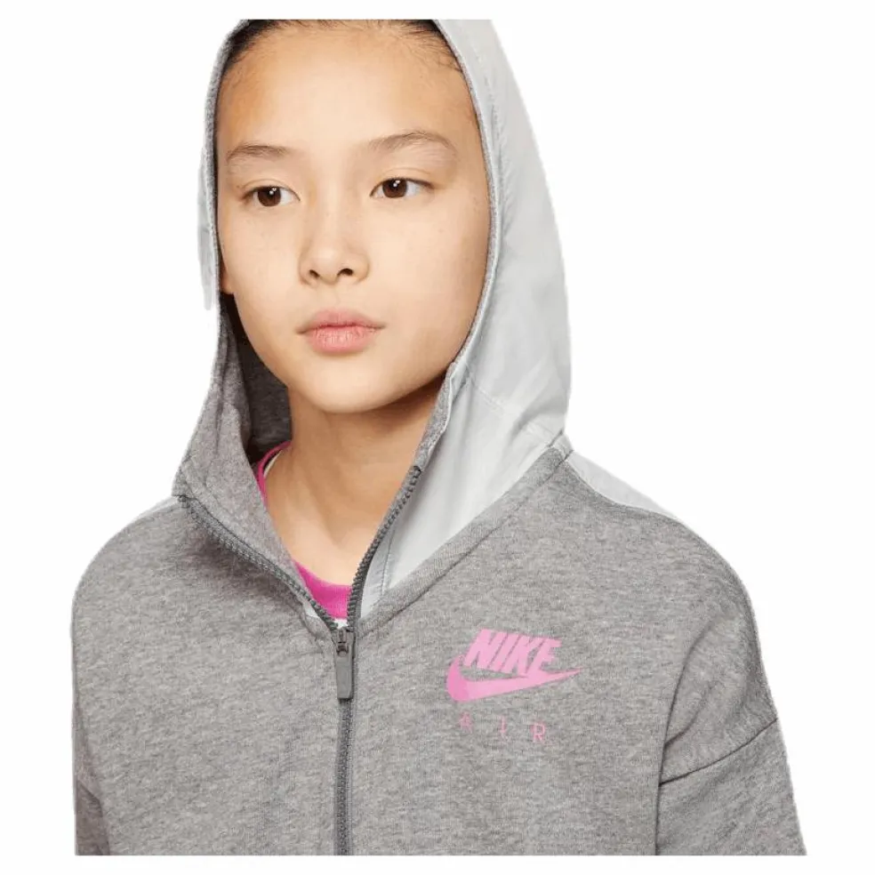 The Nike Air Hoodie combines soft French terry fabric with woven overlays and a fleece-lined hood that help keep in warmth. The loose fit has a shorter length that hits near your hips for easy layering on cool days.
