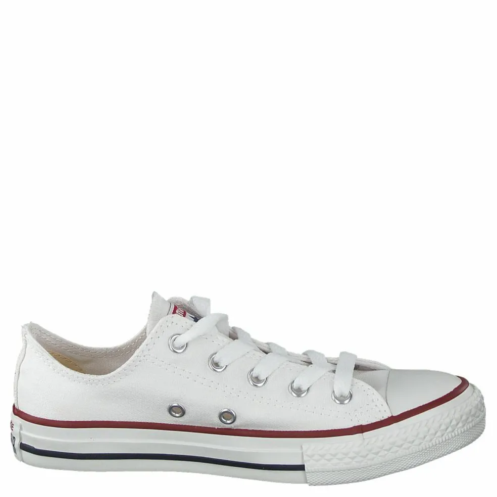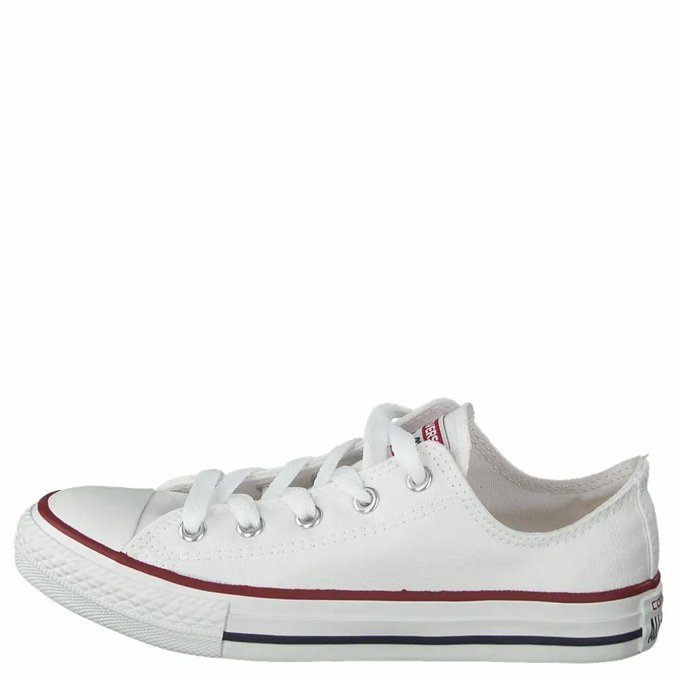 En låg sneaker från Converse i barnmodell. Återkommande klassiker i vitt som passar till allt. Yttermaterial i slitstark canvas och yttersula i gummi, snörning i vitt. En riktig favorit.