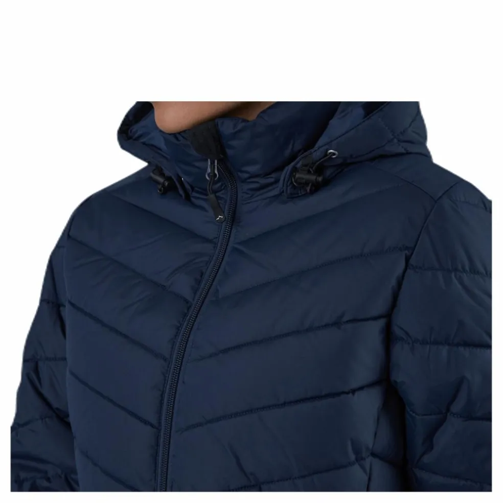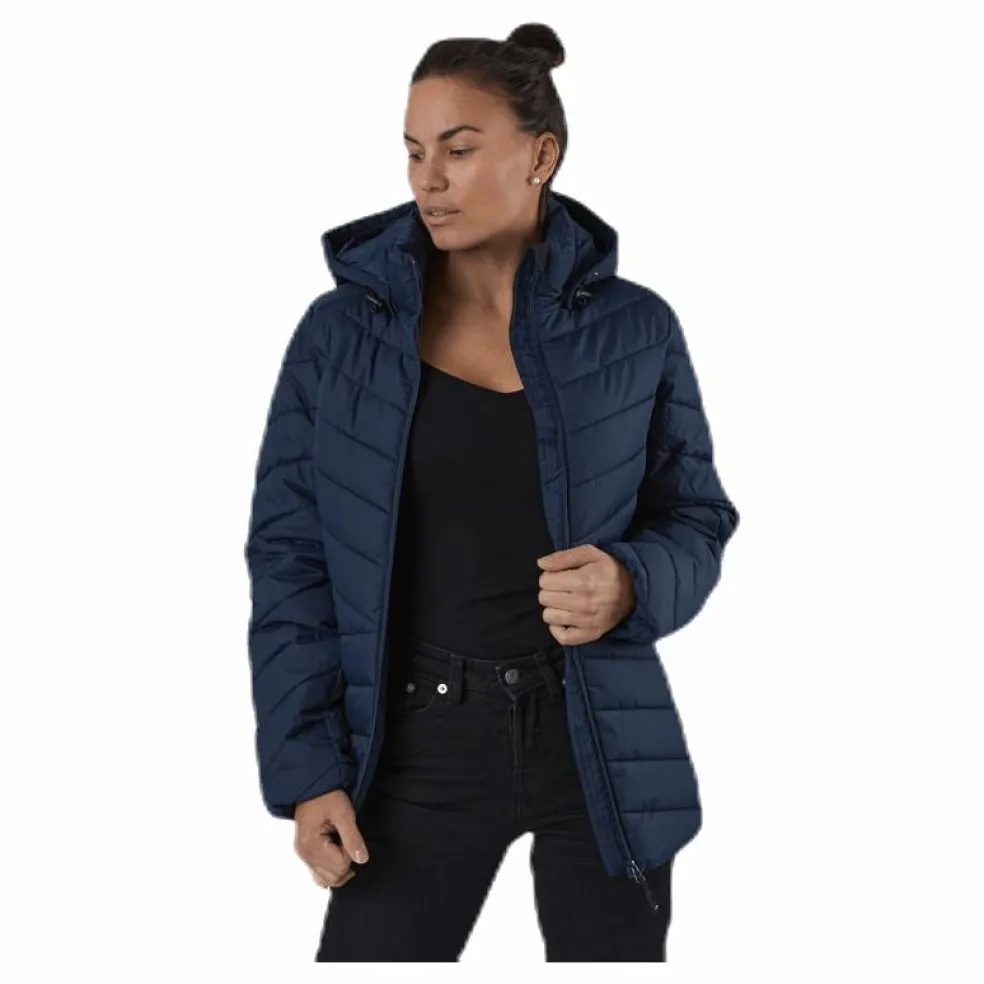 Denna snyggt designade damjacka är höstens perfekta vardagsjacka. De sneda kanalerna ger plagget en modern och elegant look, medan det vattenavvisande materialet och imiterade dunfyllningen gör det minst lika funktionellt som det är snyggt. Axelpartiet innehåller extra fyllning med mjuk polyester för högsta komfort. Jackan har två smarta, dolda fickor med dragkedja i midjan och dragsko i nederkant. Huvan har dragsko och är även avtagbar.