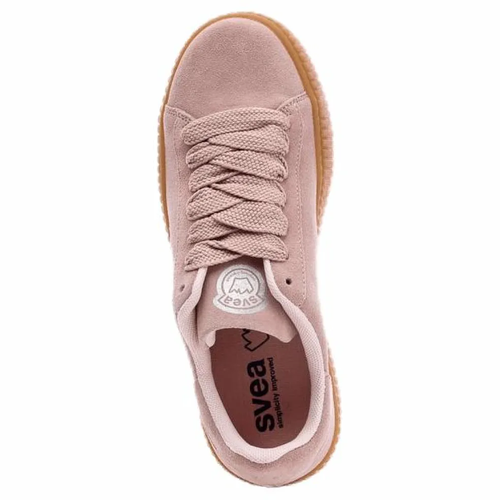 Sko med gummi sula. Rosa och grå sko har mocka ovandel och den vita skorn har syntet läder