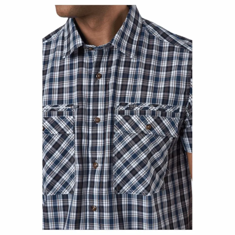 Mjuk och tunn kortärmad skjorta i ett otroligt följsamt material. Arizona är en återkommande favorit i Tuxers sortiment med tidlös design och svalkande känsla. Det som gör denna skjorta till en bästsäljare är de smarta fickorna. Två av bröstfickorna är försedda med knappar och precis ovanför dessa finns ytterligare en ficka, lätt dold, med dragkedja. Passformen är rak och materialet är lätt och snabbtorkande.