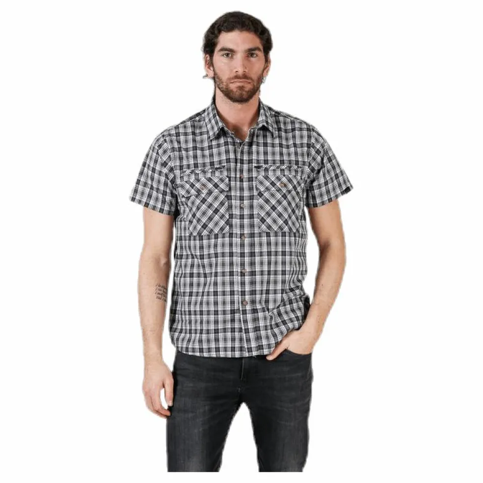 Snygg och praktisk kortärmad skjorta med hela fyra fickor. Två av fickorna är försedda med knappar som på traditionellt vis nås ovanifrån. Därunder finns två blixtlåsförsedda fickor som nås från sidan. En perfekt skjorta för dig som vill hålla koll på sakerna i sommar.