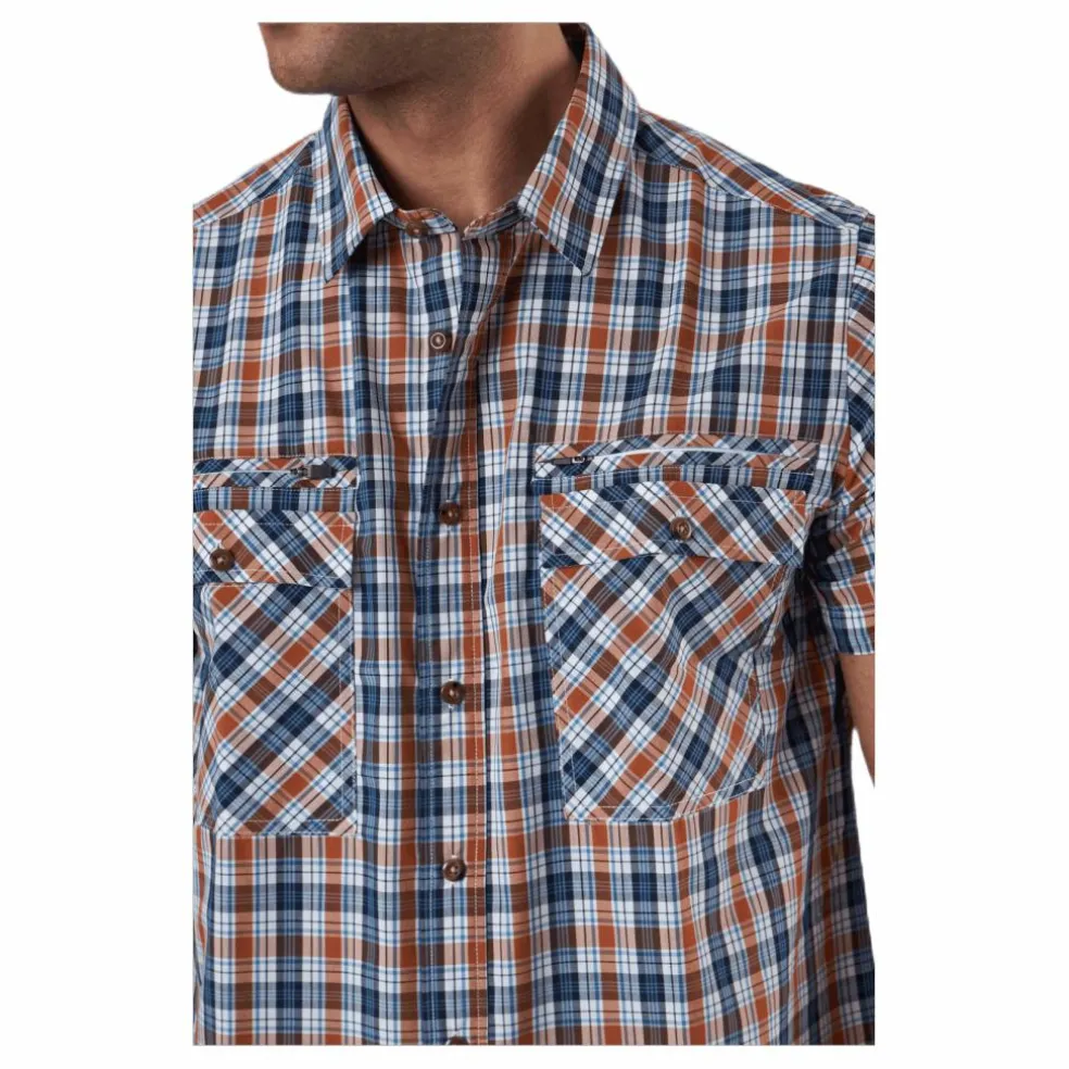 Mjuk och tunn kortärmad skjorta i ett otroligt följsamt material. Arizona är en återkommande favorit i Tuxers sortiment med tidlös design och svalkande känsla. Det som gör denna skjorta till en bästsäljare är de smarta fickorna. Två av bröstfickorna är försedda med knappar och precis ovanför dessa finns ytterligare en ficka, lätt dold, med dragkedja. Passformen är rak och materialet är lätt och snabbtorkande.