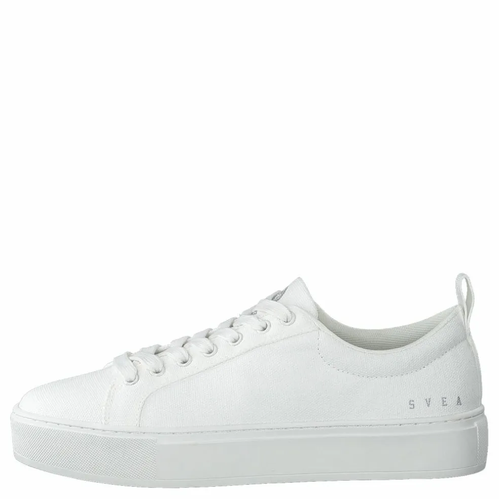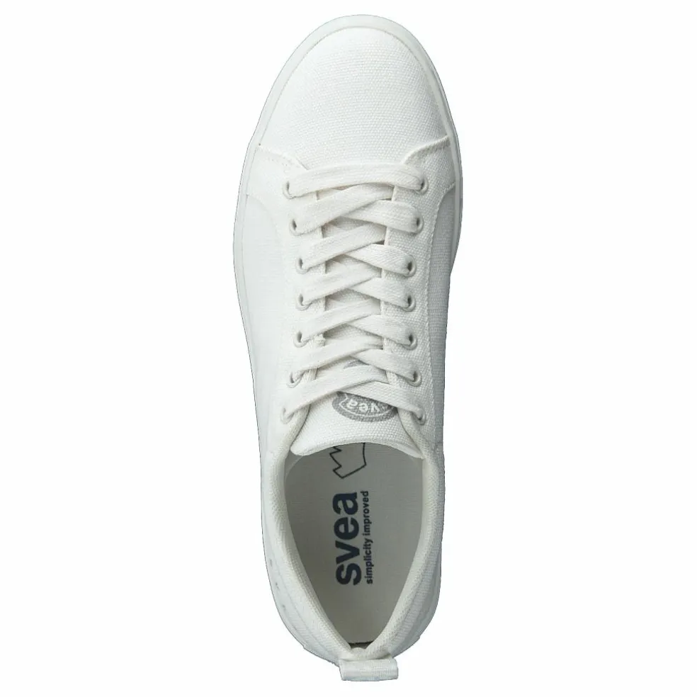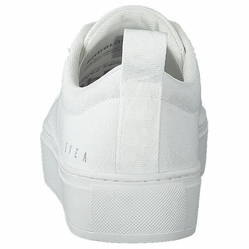 En klassisk sneaker med rund tå i canvastyg. Har gummisula med lätt platå och snörning. Har en liten svealogga på utsidan av skorna och baktill ett vävt sveaband.