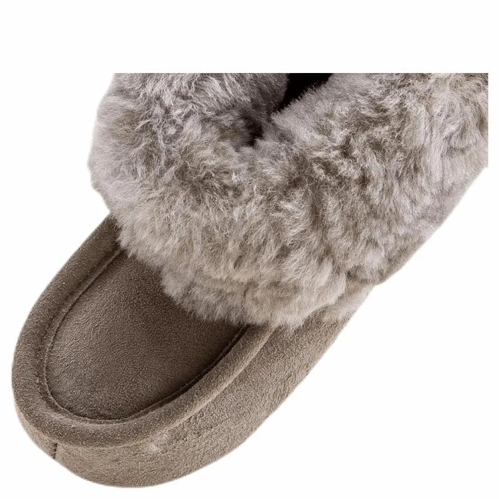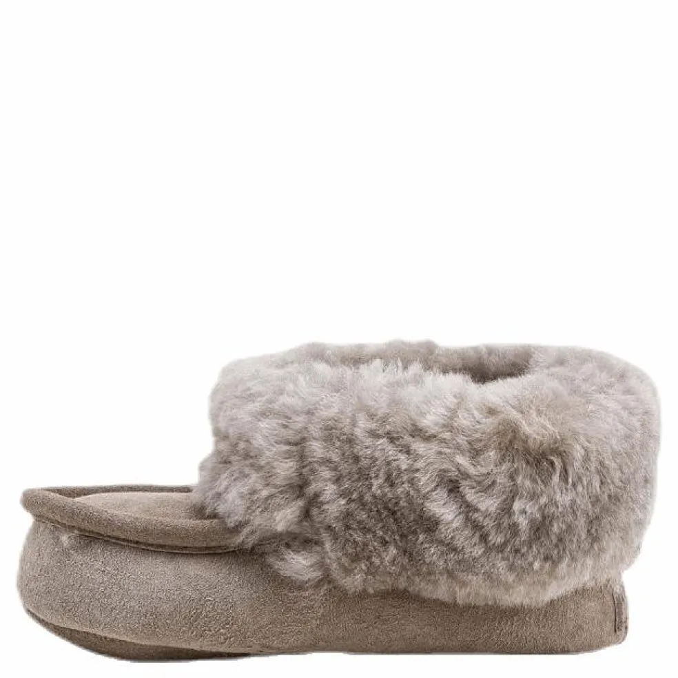Mysig innetoffel i äkta fårskinn från Mjúka. Dekorativt skaft och ett skönt foder i fårskinn som håller dina fötter varma.