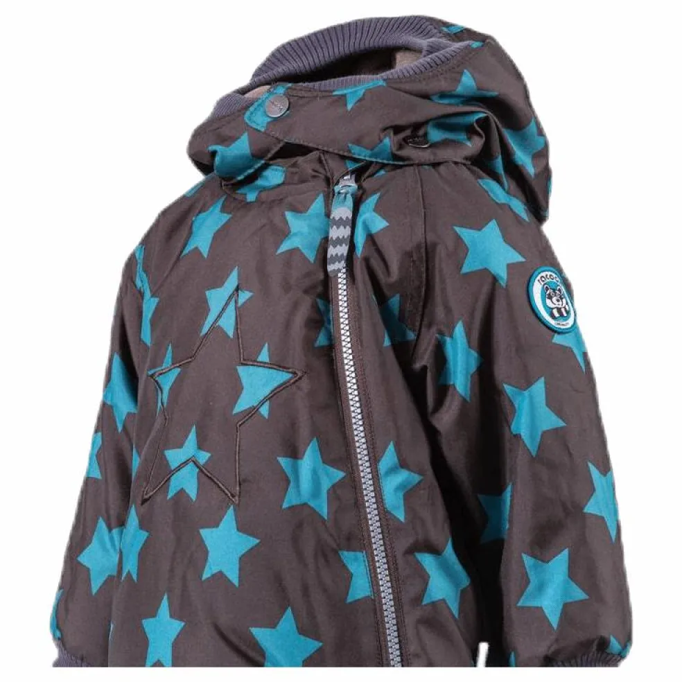 Jacka fodrad med mjuk fleece och THERMOLITE. Stjärnmönster. Avtagbar huva med tryckknappar, assymmetriskt blixtlås och broderad stjärna fram. Justerbar resår nedtill. Jackan andas och vattentätheten är 9000 mm (WP9000).