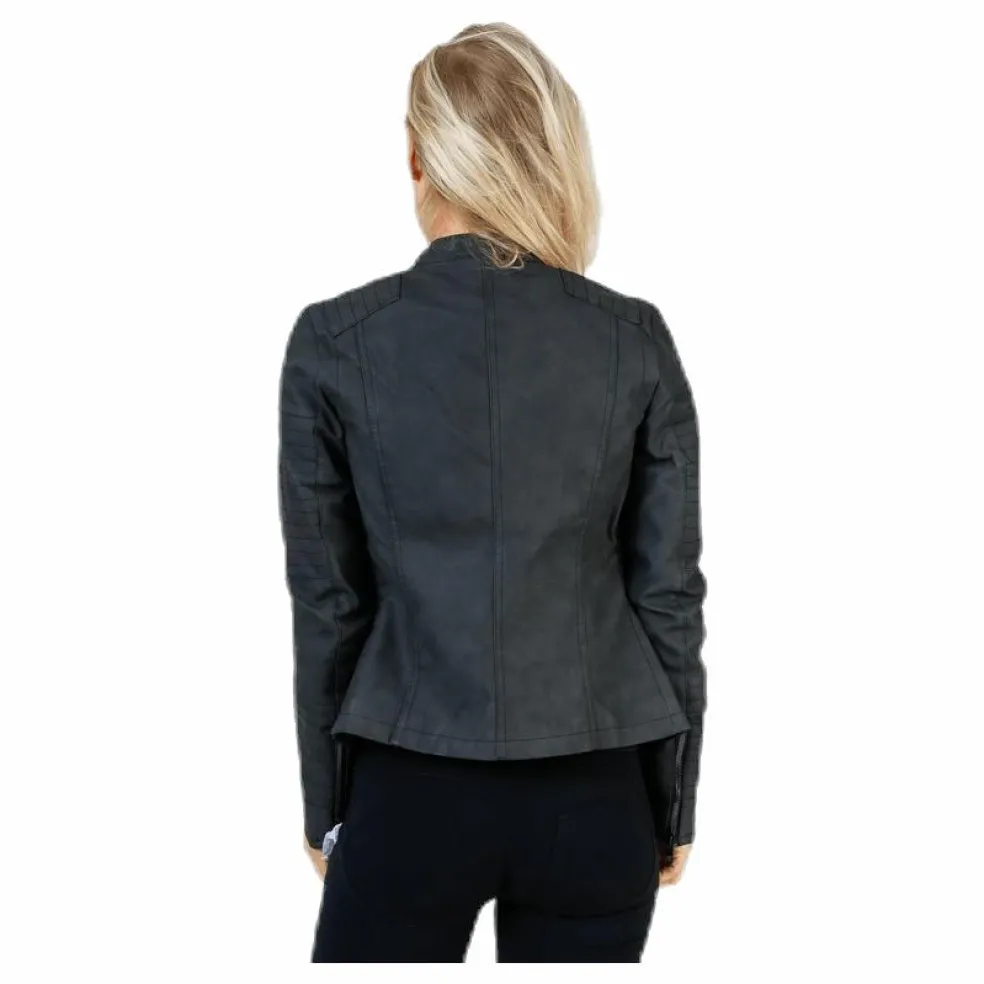 Bikerjacka från Only. Formad, kort modell. Mockaimitation. Sned dragkedja och knäppning framtill.