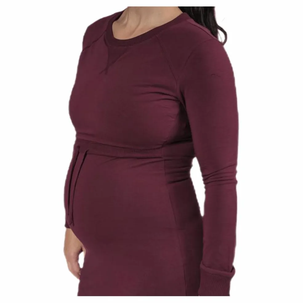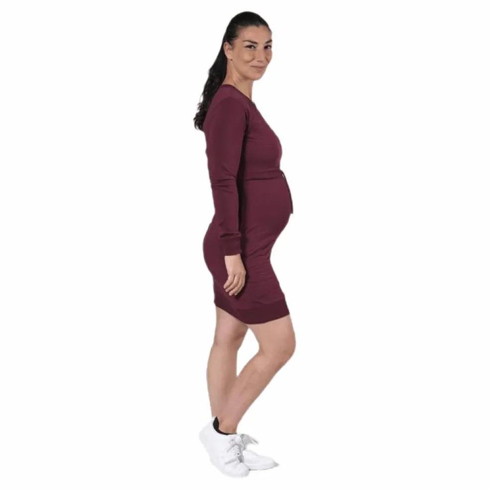 Klänning som passar både under graviditet och amning. Tillverkad i 92% ekologisk bomull och 8% elastan. Försedd med amningsomlott med värmande fleecefoder. Certifierad enligt STANDARD 100 by OEKO-TEX® och GOTS.