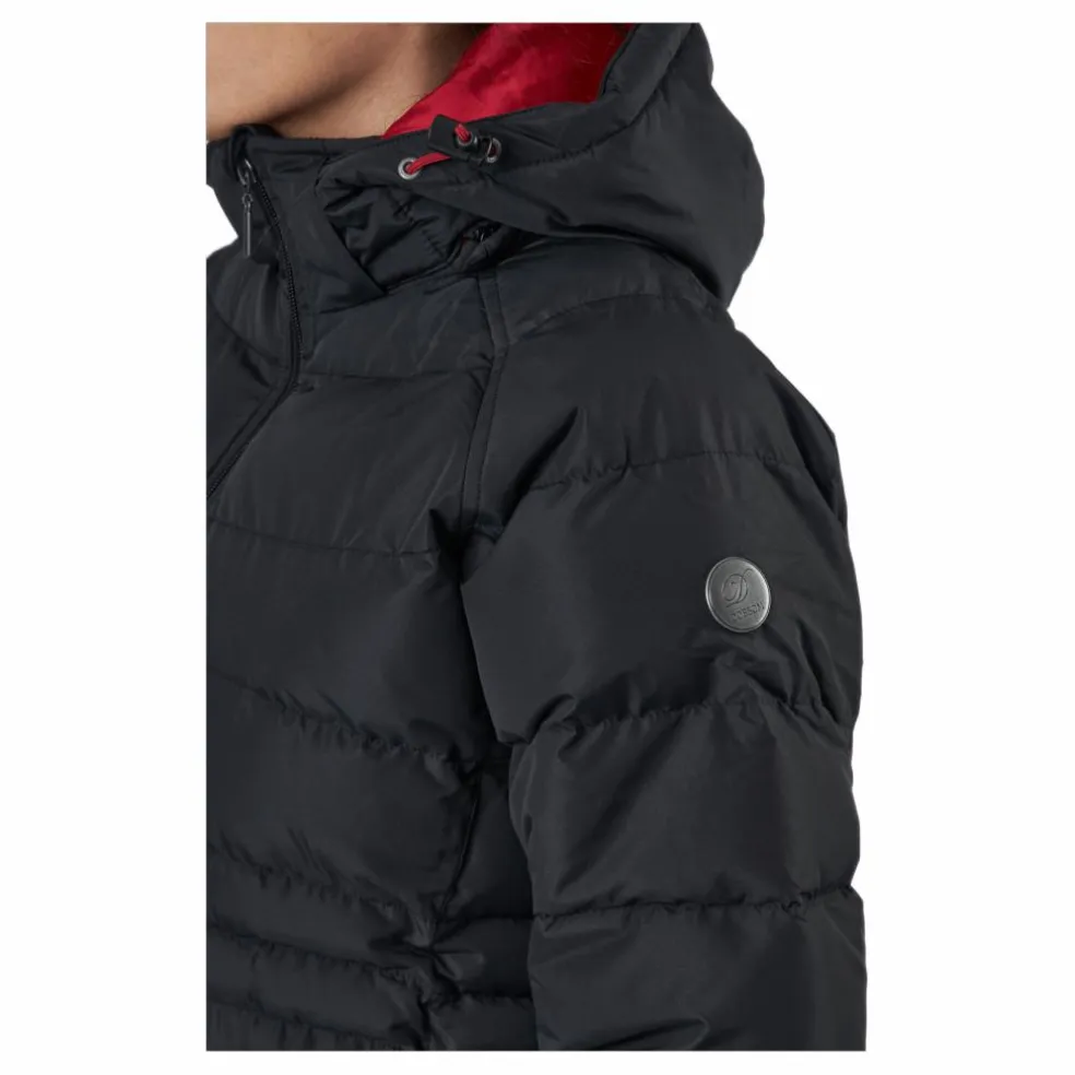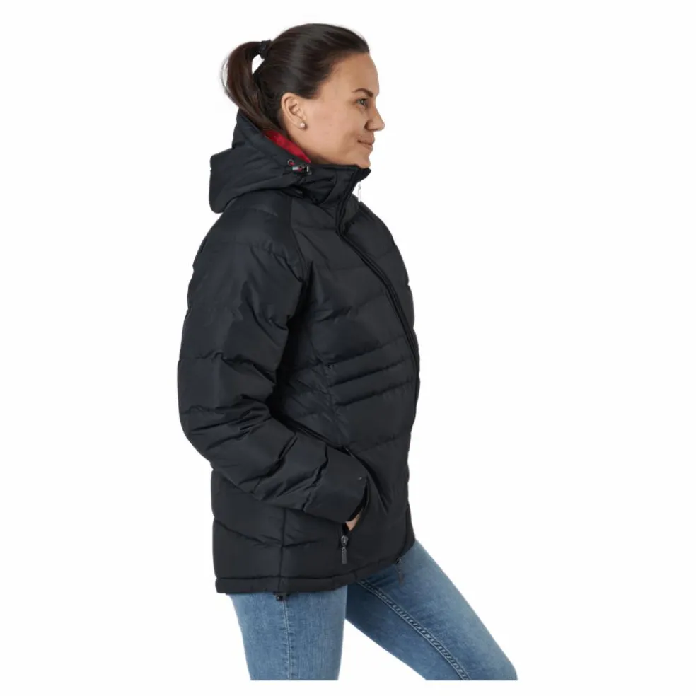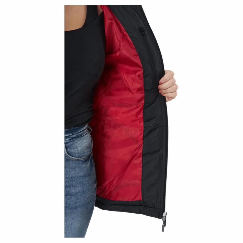 Varm och smidig jacka som är extra välfylld med polyestervadd, vilket ger en skön dunkänsla i plagget. Avtagbar huva, en skön och mjuk mudd i ärmavslutet. Två ytterfickor och en innerficka. 2-vägs blixtlås i fronten. 100% Polyester Dammodell!