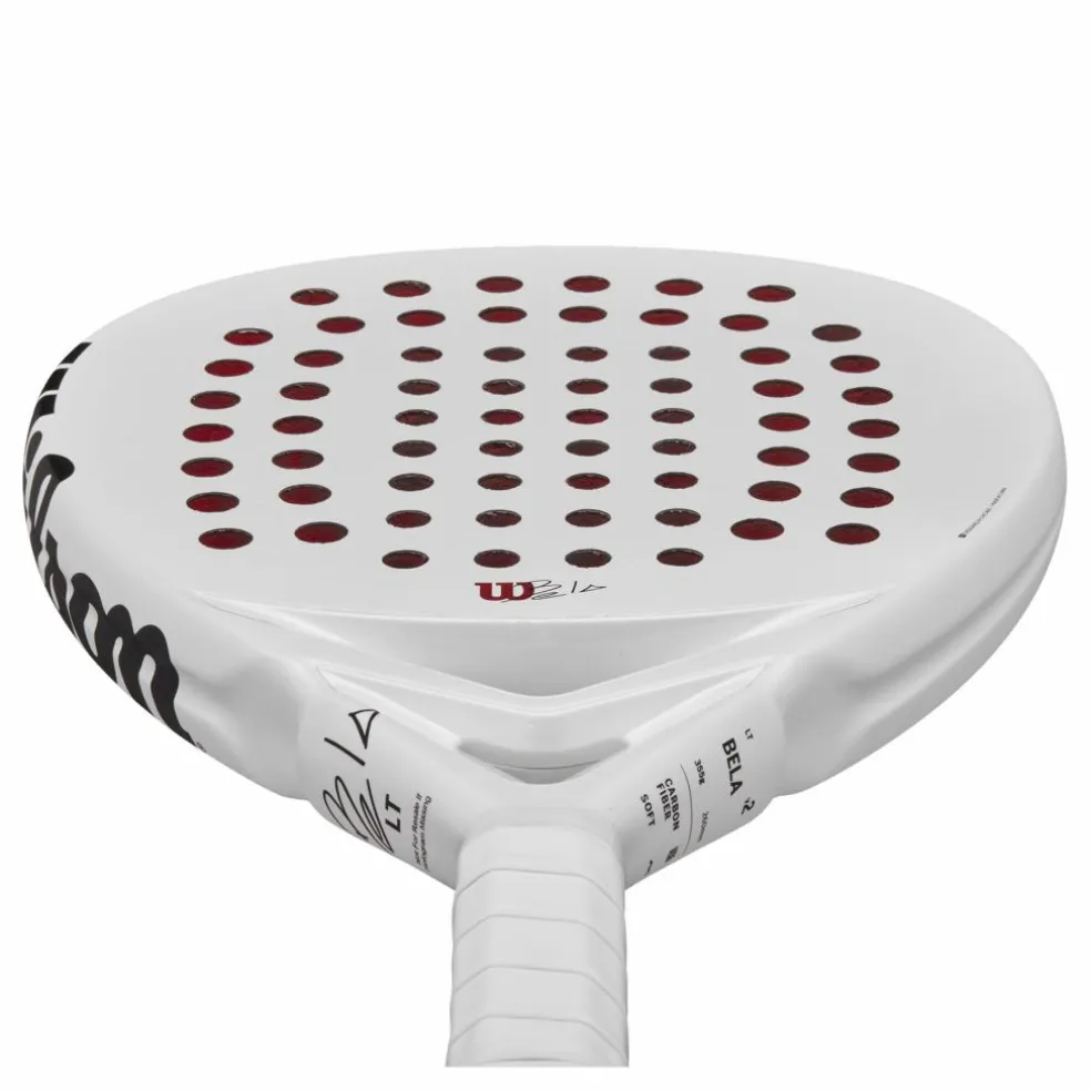 Vi introducerar Bela Lt V2, Wilsons padelracket. Dess aerodynamiska ram minskar luftmotståndet för extra kraft och spinn, vilket tar dig till din toppprestanda. Dess 5-lagers paddelkonstruktion ger optimal balans mellan kontroll, kraft och spelbarhet med varje slag. Gör dig redo att dominera banan.