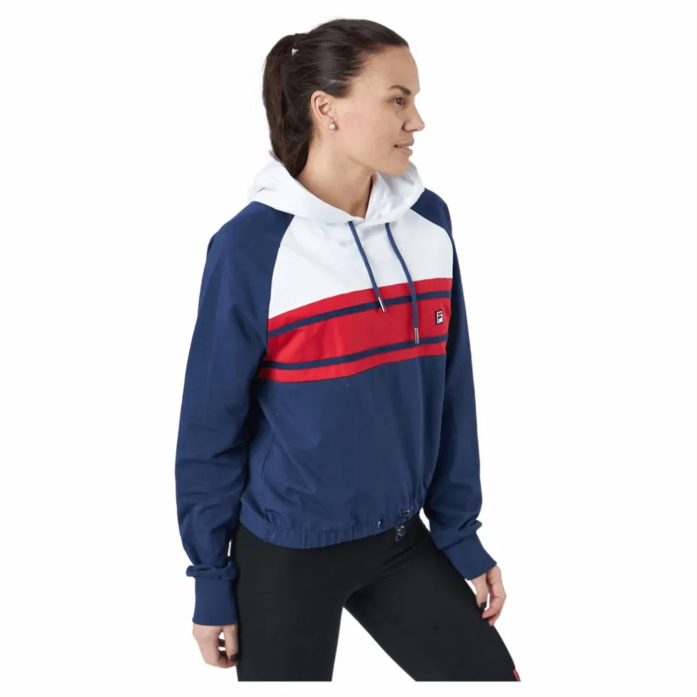 ”BURGOS” kappad luvtröja från FILA. Detta klädesplagg är kategoriserat som en ”Cropped Hoody” i Filas avdelning för ”Women”. Det faller under ”kläder” klassificeringen ”toppar”, och klassificeras som en ”vuxen” klädesplagg. När det gäller kön och stil faller den under kategorin ”sport”.