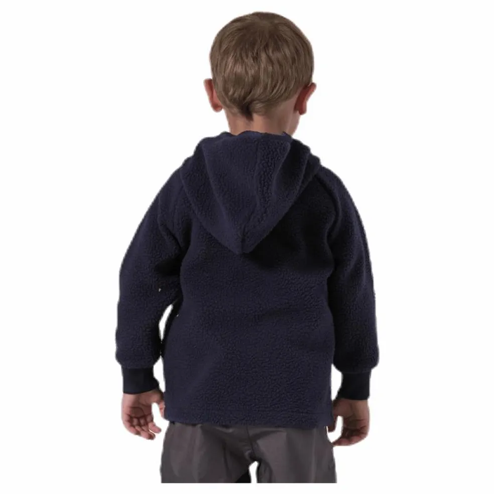Fantastiskt mjuk och skön teddytröja i barnmodell med mysig huva. Tröjan har mudd i ärmslut och försluts med tryckknappar. Djupa sidofickor med plats för alla dagens upptäckter. Badge på brösten i konstläder. Material: 100% polyester. Skötselråd: Tvätta med liknande färger i 30 grader. Använd ej sköljmedel.