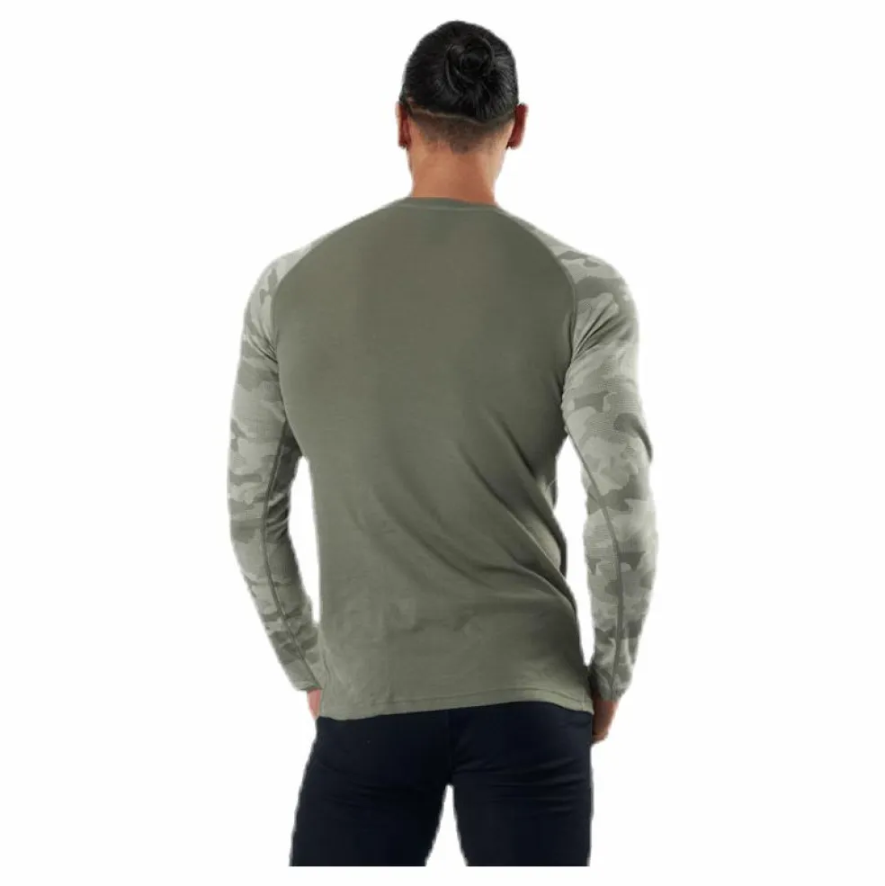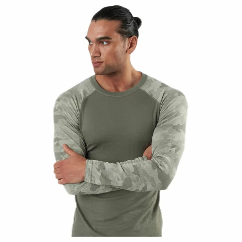 Jacquardstickat underställsöverdel med camouflagmönster. Stickad i en behaglig ullblanding av merinoull och syntetiska fibrer. Denna kombination ger ett mer slitstarkt -och fukttransporterende plagg med god andning, som hjälper dig att reglera kroppstemperaturen bättre. Tunna, elastiska sömmar förhindrar frikton mot huden och ger extra bra rörelsefrihet.