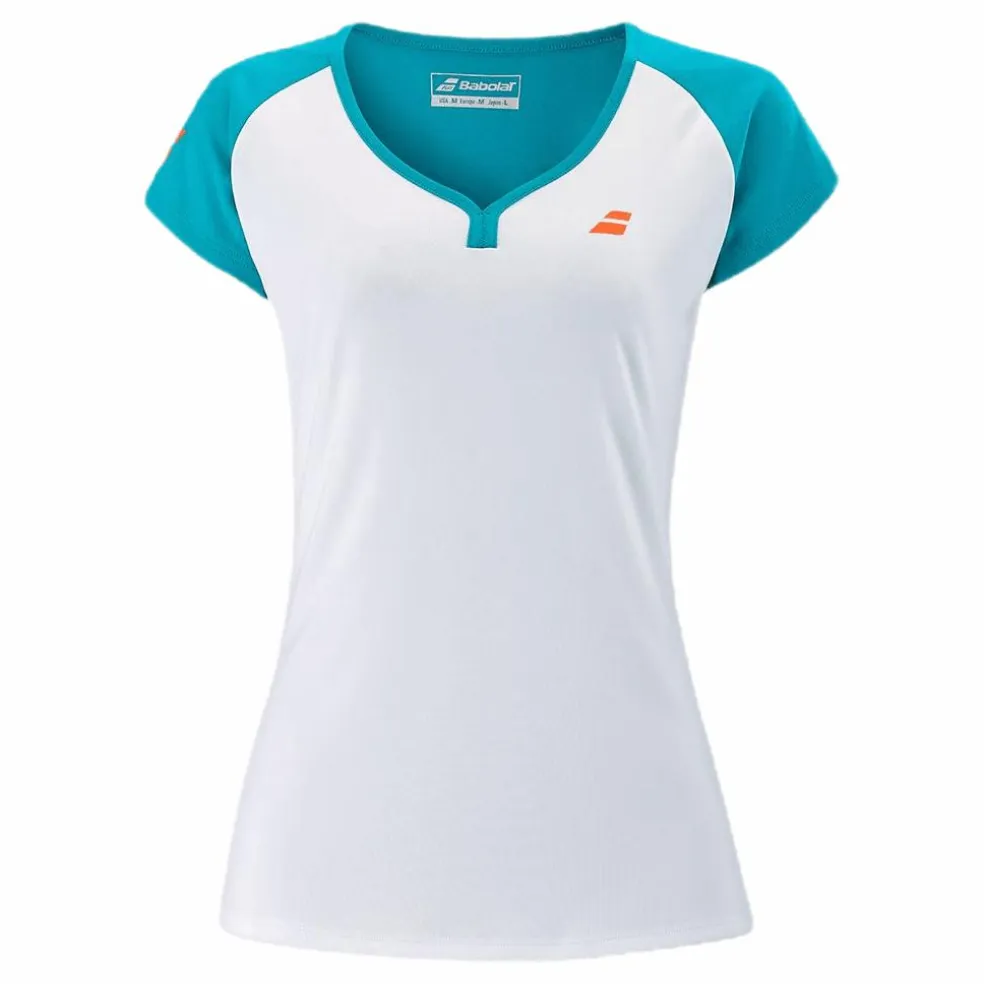Detta är en kortärmad topp, som är en viktig del av tenniskläder. Märket är Babolat och färgen är blå. Denna kan bäras med alla typer av tenniskjolar såväl som andra kläder som jeans. Den har dragkedja i sidan, kepsärmar och fickor. Den kan bäras av vuxna, som är tillfälliga tennisspelare.