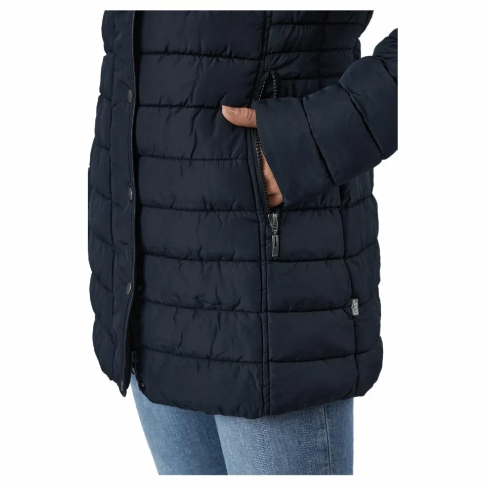 Denna härliga vinterjacka är gjord av ekologisk mikrofiber och tillhör därför vår Green Choice-kategori. Med sina vattenavvisande och vindtäta egenskaper hjälper Cardie dig att möta höstens hårdaste väder. Den imiterade dunfyllningen håller dig varm, och den extra fyllningen med mjuk polyester i axelpartiet maximerar komforten. Cardie är utrustad med två stora fickor med dragkedja i midjan och på insidan av bröstet. Längst ner på ärmen finns en innermanschett och både luvan och pälsimitationen är avtagbara. Huvan på jackan är avtagbar, så du kan variera modellen. Och jackans nederkant är försedd med dragsko, för att förhindra att kall luft sipprar in.