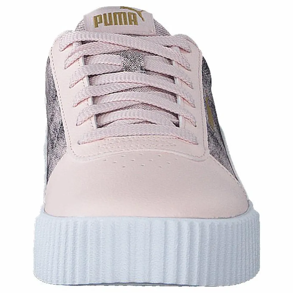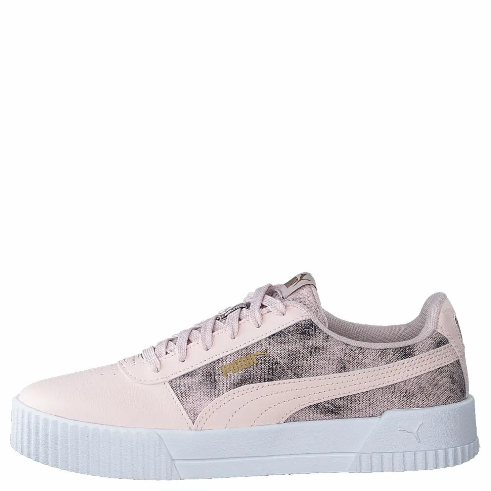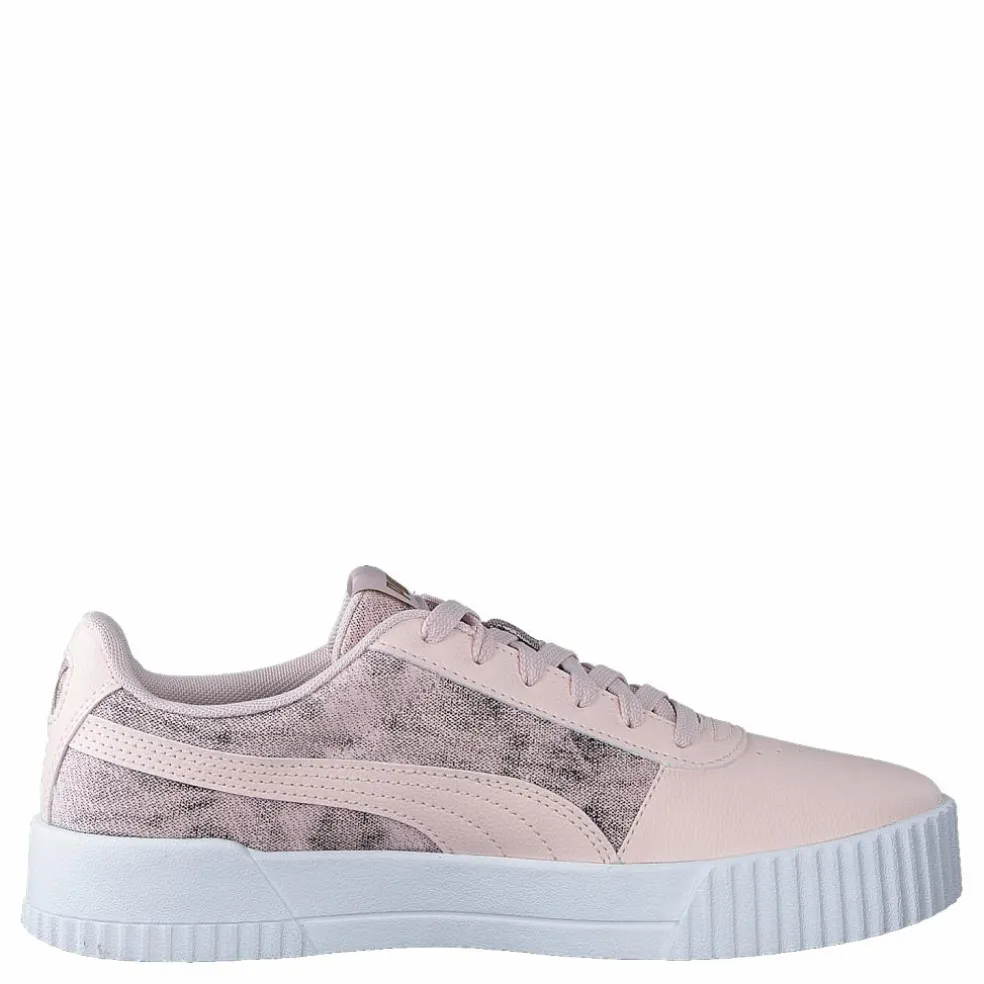 Den höga profilen på Puma Carina Tie-Dye damsneaker är perfekt för att sakkunnigt balansera retroutstrålningen i denna stil.