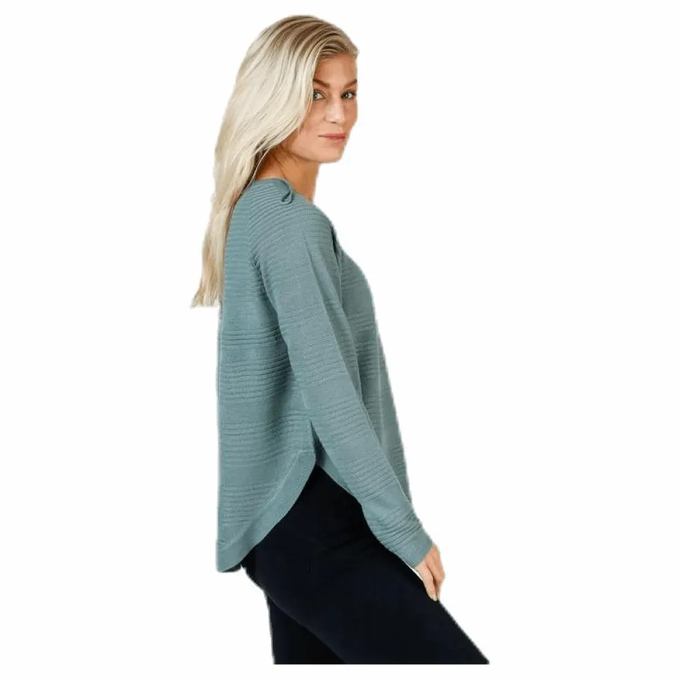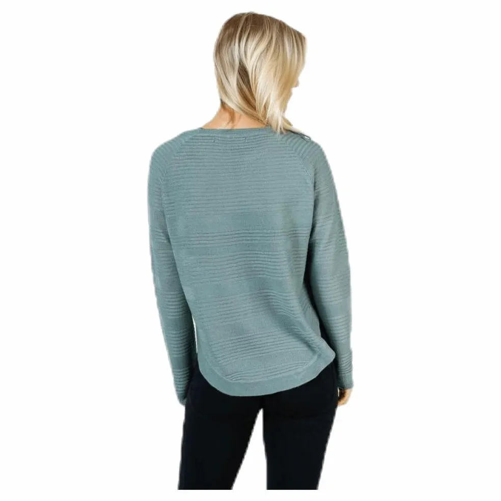 Stickad tröja med rund halsringning samt rundad nertill, både bak och fram. Längd 64 cm i storlek M. 100% Akryl.
