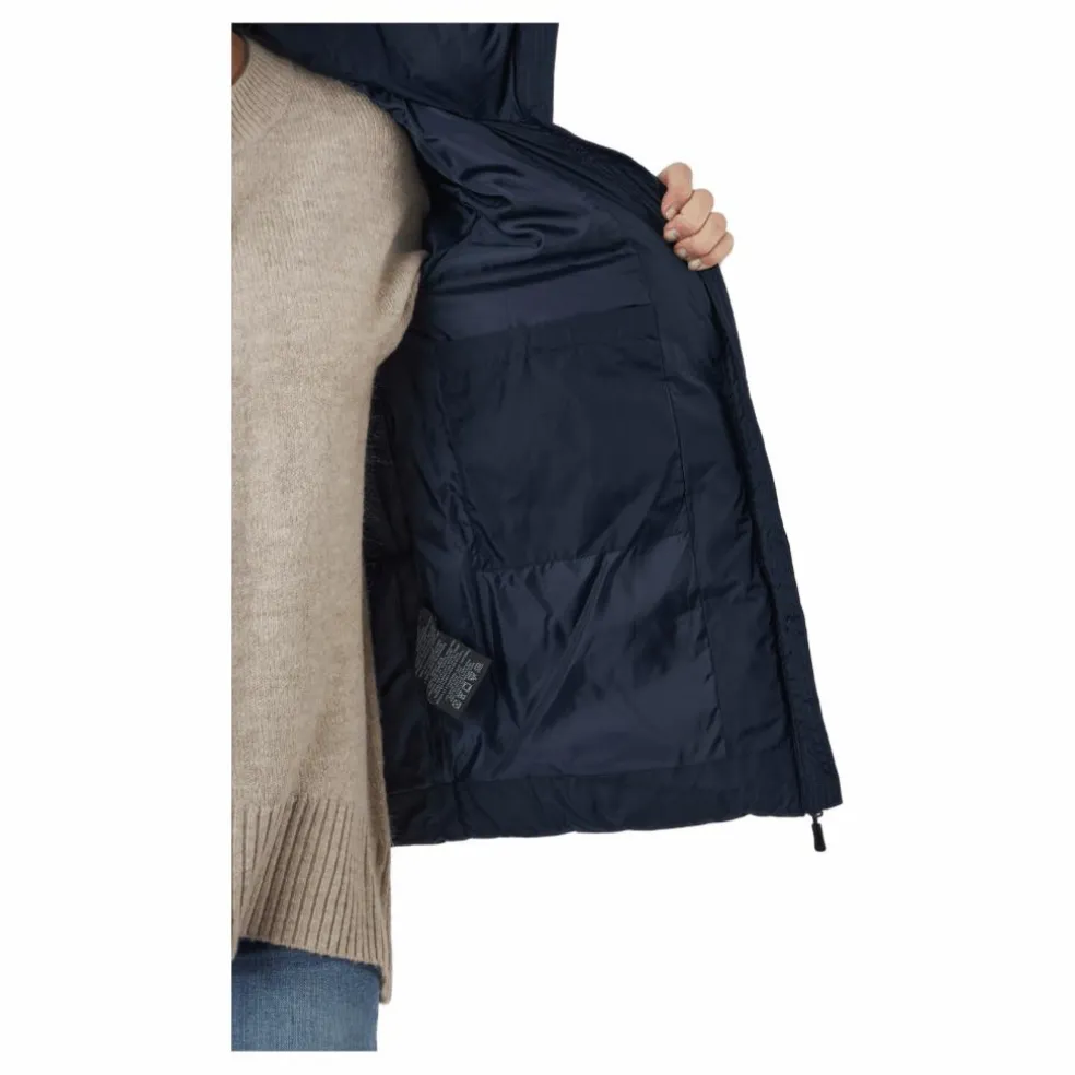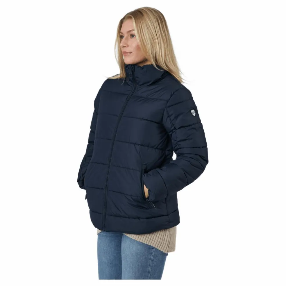 En snygg dunjacka imitation som kommer i säsongens trendigaste färger! Clara är tillverkad i återvunnet yttertyg samt vadderat med dunimitation. Det är en del av vår Green Choice-kollektion – vår hållbara kollektion med mindre påverkan på miljön. Det mjuka yttertyget i mjuk tex polyester är vattenavvisande och för att uppnå bästa komfort har vi lagt lite extra högt upplyft mjuk polyestervadd på axlarna. Den höga kragen hjälper dig att hålla dig varm runt halsen. I Clara har vi skapat en mycket bekväm casual jacka utan att kompromissa med en snygg design. Den är utrustad med två fickor med dragkedja i midjan samt en innerficka.
