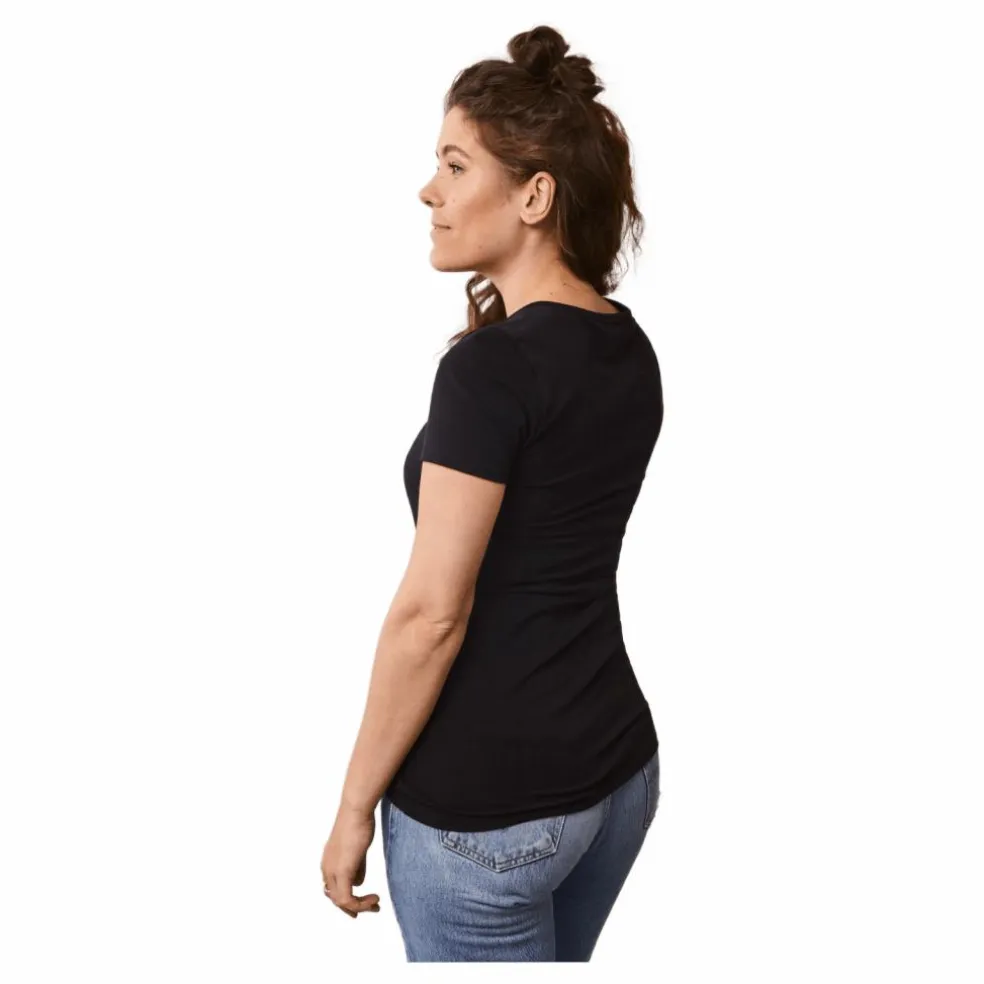 Boobs prisbelönta klassiker är en favorit hos mammor världen över. Det perfekta baslagret, gjort för att fungera lika bra när du är gravid som när du ammar, med mjukt rundad halsringning och kort ärm. I ekologisk bomull som är så mjuk och skön att du kommer att vilja bosätta dig i den. Gjord för att kunna bäras, tvättas och älskas om och om igen. Material: 92% ekologisk bomull och 8% elastan.