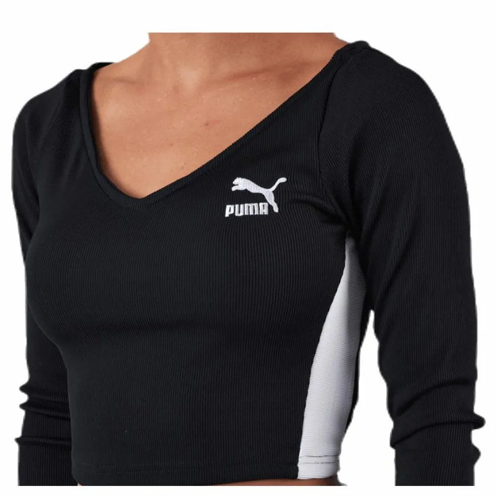 Snygg V-ringad Cropped Top med tight passform. Damstorlekar. 96% polyester, 4% elastane. T7 revärer i vitt längs sidorna.