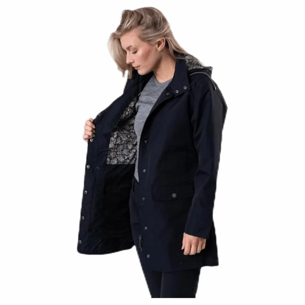 Fingertoppslång jacka med snyggt paisleymönstrat foder. Jackan är vindtät och har en lätt coating så den ska skydda mot lättare regn.