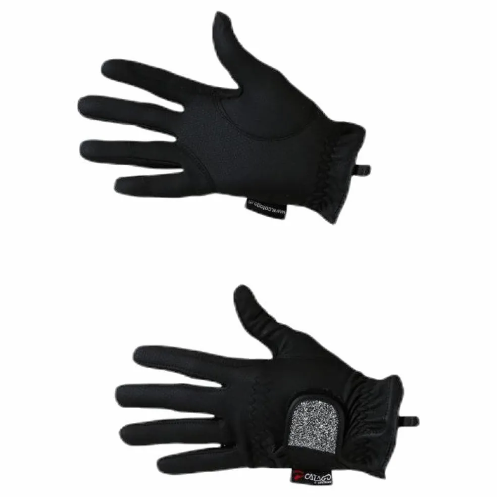 CATAGO Elite Shine handskarna har en perfekt passform som ger ett fantastiskt grepp om tygeln. Fin detalj med glimmer på kardborreförslutningen, som ger handsken ett fint och glänsande utseende. De är framställda av ett tekniskt PU-material som har ett högt innehåll av Lycra. Handskarna har en andningsbar funktion, är kraftfulla och slitstarka med extra förstärkning på de ställen som utsätts för mest slitage från tyglarna. Handskarna är perfekta inom alla hästsportsgrenar med deras funktionella och klassiska passform. Handtvätt rekommenderas. Matterial: PU läder