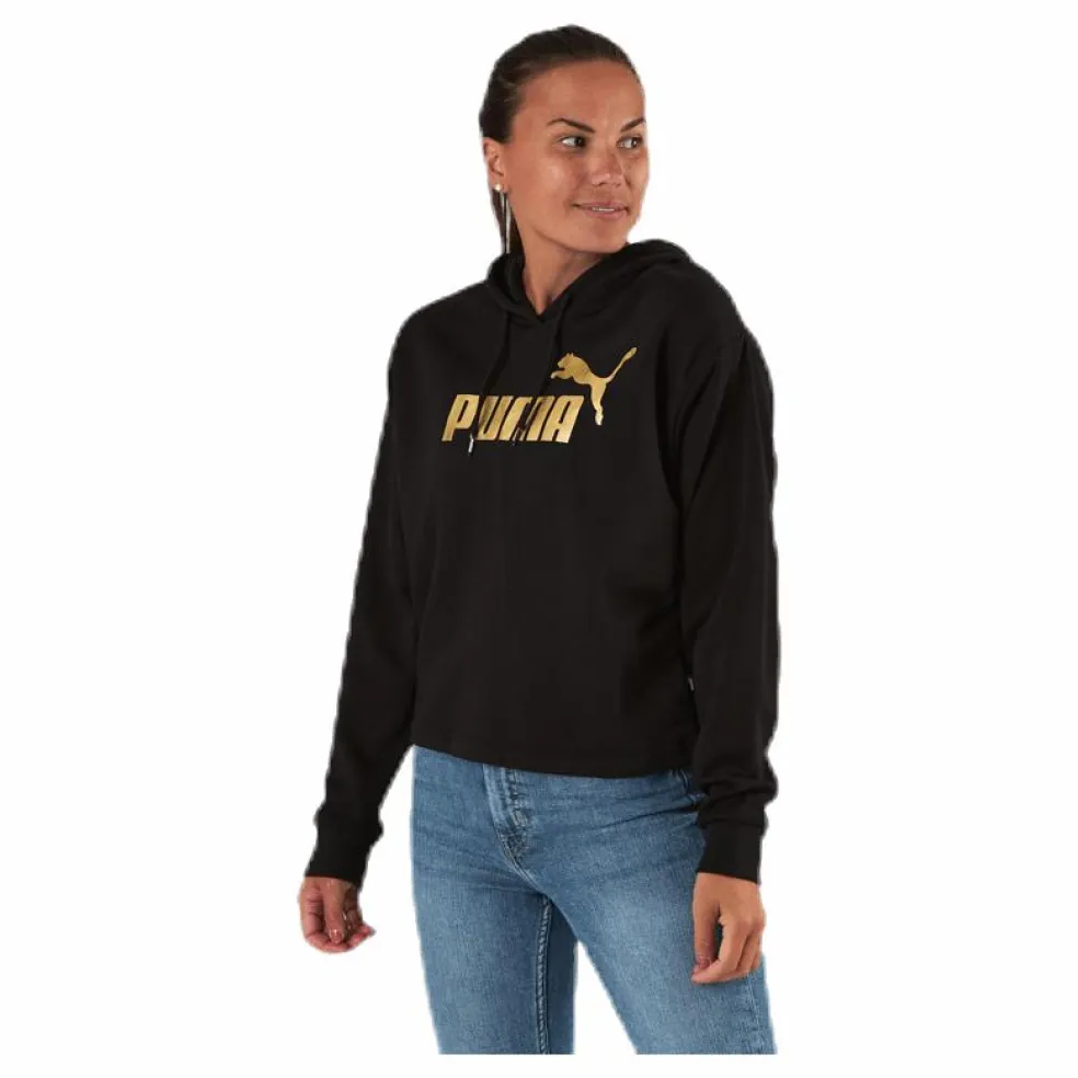 Cropped Hoodie med PUMA tryck i metallic. Den innehåller bomull från Better Cotton Initiative. Huva med justerbar snörning för bästa passform. Normal passform.