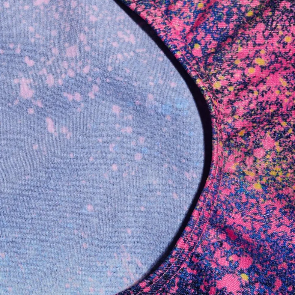 Ta ditt dopp ur den här världen med vår iögonfallande rosa och svarta Splashback-baddräkt med fascinerande tryck i himmelsk stil. Stänkryggsstilen har remmar bort från axlarna för att öka rörelsefriheten, vilket gör att unga simmare kan träna utan att känna sig begränsade. Idealisk för lektioner och träning, baddräkten är frontlinje för komfort och blygsamhet. Tillverkad av vårt slitstarka Endurance+-tyg, är det snabbtorkande och 100 % klorbeständigt. Dessutom är polyestergarnet i Endurance+-tyget tillverkat av 100 % avfall från konsumenter, såsom återvunna plastflaskor.