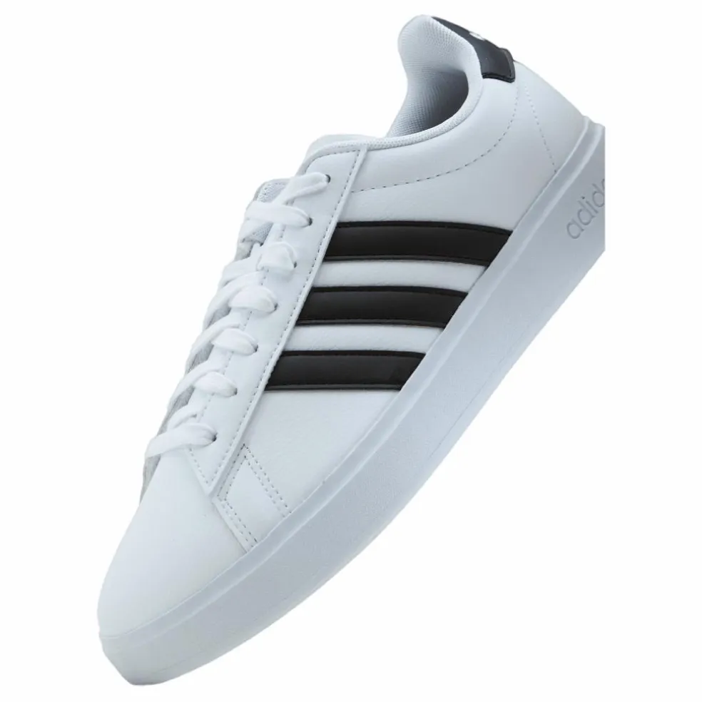 Kliv in i ren komfort och tidlös stil med adidas Grand Court Cloudfoam Comfort Shoes, en symfoni av molnvitt, kärnsvart och eterisk mjukhet. Dessa skor är en poetisk blandning av klassisk tennisinspirerad design och modern dämpningsteknik, utformade för att lyfta din vardagliga look och känsla.Ovandelen är en orörd canvas av molnvitt läder, prydd med de ikoniska tre ränderna i kontrasterande kärnsvart. Det är en färgpalett som viskar av elegans och mångsidighet, redo att komplettera alla kläder i din garderob. Den låga siluetten ger rörelsefrihet och en elegant, strömlinjeformad estetik.Men den sanna magin ligger inom – Cloudfoam-mellansulan är en kudde av plysch komfort som vaggar dina fötter med varje steg. Det är som att gå på en bädd av moln, varje steg dämpat och stöttat av det lyhörda skummet. Yttersulan i gummi ger pålitlig dragkraft, vilket säkerställer en säker resa genom din dag.Sätt dig i dessa adidas Grand Court-skor och låt dem bli en förlängning av din personliga stil. De är en tom vers som väntar på att bli skriven, en ny sida i din modehistoria. Oavsett om du promenerar genom stadens gator eller dansar genom livets ögonblick, kommer dessa skor att vara din ständiga följeslagare, en poetisk blandning av komfort och enkel cool.