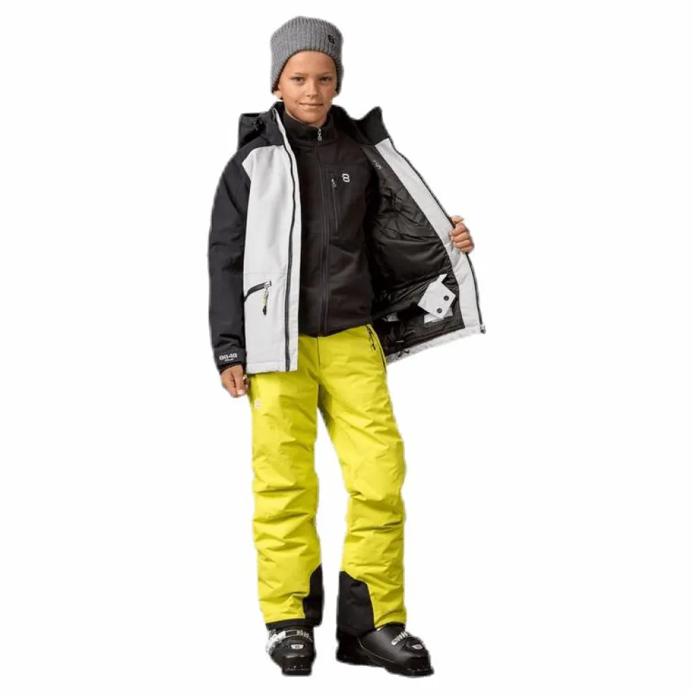 Skidjacka för junior, i skönt avspänd look med lite lösare passform. Högfunktionell material med full vattentäthet, tejpade sömmar och hög andningsförmåga. Avtagbar och justerbar huva med tryckknappar, så den lossnar om man skulle fastna i något. 4 ytterfickor med tåliga dragkedjor från YKK och justerbara ärmslut med kardborre. Dragsko i nederkant samt snölås i midjan. Broderade loggor på bröst och ärm. durAtec® Extreme är ett tekniskt material med både hög vattentäthet (10 000mm) och andningsförmåga (8 000g/m2/24h). Fullt tejpade sömmar. Alla produkter från 8848 Altitude är 100% fria från flourkarboner!