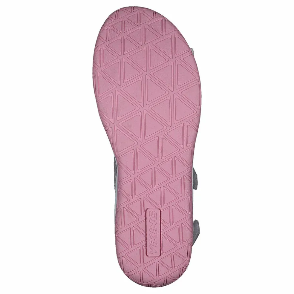 sommarsandaler för pojkar och flickor, med vitt konstläder och ovandel i textil, vikinglogotyp på utsidan av skon