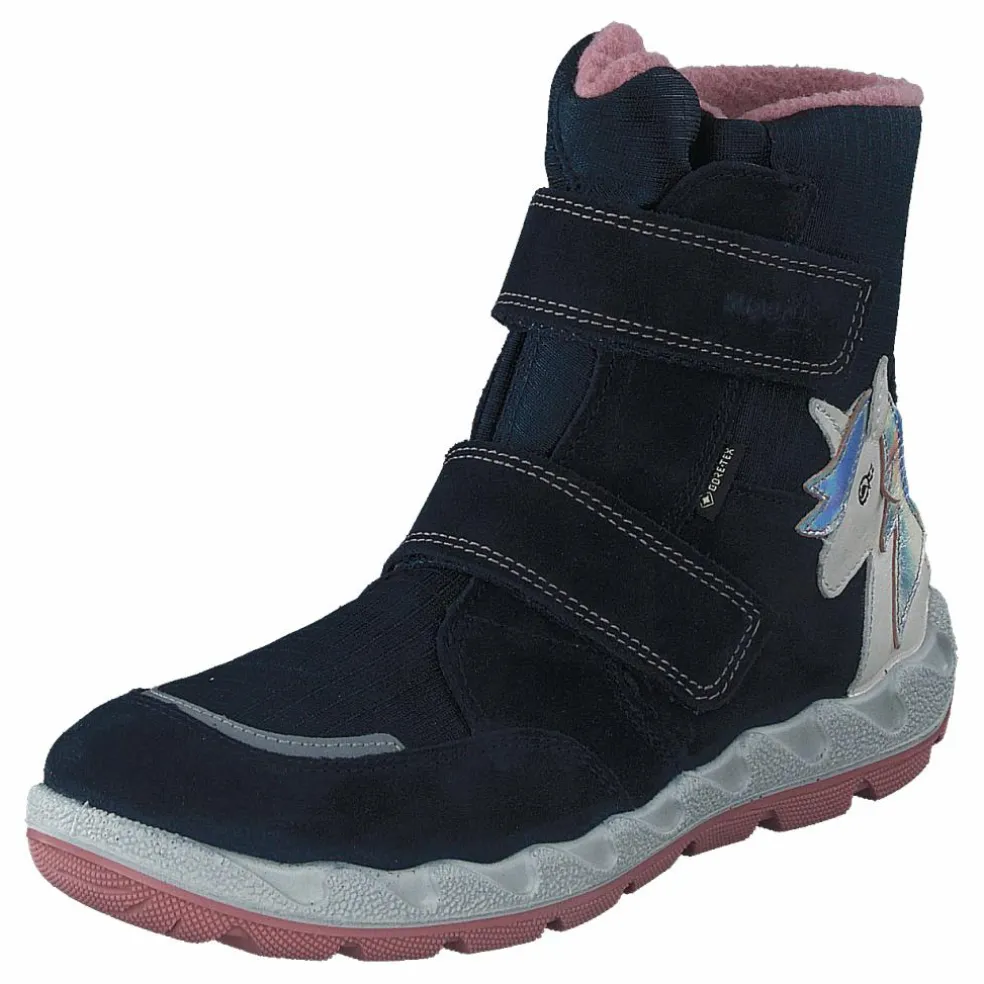 Små isprinsessor och prinsar känner sig särskilt hemma i ICEBIRD-kängan. Den söta superfit vinterkängan är gjord av en underbart mjuk mocka i kombination med funktionell textil. Den coola lilla hästapplikationen får barns ögon att lysa. Den tvåfärgade sulan, som påminner om snödrivor, är gjord av särskilt halkbeständig TPU. I kombination med slitbanan säkerställer detta det bästa greppet även på hala underlag. Tack vare de 2 kardborrebanden kan ICEBIRD anpassas perfekt till vilken fot som helst och kan tas på och av mycket snabbt. GORE-TEX-fodret håller fötterna varma och torra även under de kallaste dagarna. Det gäller även den uttagbara innersulan med ren ny ull. ICEBIRD vinterkänga kommer i WMS bredd W.