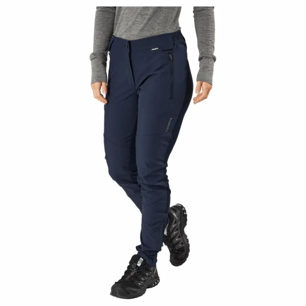 Icepeak byxor för kvinnor. Slimmad passform. Dragkedjor vid benslut. Två framfickor med dragkedja. Elastiskt midjeband. Extra hög midja. Stretch i kritiska delar för optimal rörelsefrihet. Framtill av vind- och vattentätt softshell-tyg (vattenpelare 10000 mm, andningsförmåga 5000 mvp), baksida av stretchigt och andningsbart stickat material. Vattenpelare 10 000 mm. Andningsförmåga 5 000 gm224h. Softshell är ett funktionellt material för ett brett utbud av utomhusaktiviteter. Produkten ger väderskydd samtidigt som den är bekvämt flexibel. Tygytan har behandlats med en vattenavvisande finish. Produkten är tillverkad vattenavvisande utan PFC. 2-vägs stretchmaterialet ökar rörelsefriheten. Detta hybridplagg är tillverkat av en kombination av olika material för att skapa en balans mellan skydd, komfort och funktionalitet. Denna AWS EXTREME-produkt möter behoven hos aktiva utomhusmänniskor även under extrema förhållanden. Strukturella detaljer och skyddsmaterial gör produkten funktionell i alla situationer, oavsett väder.