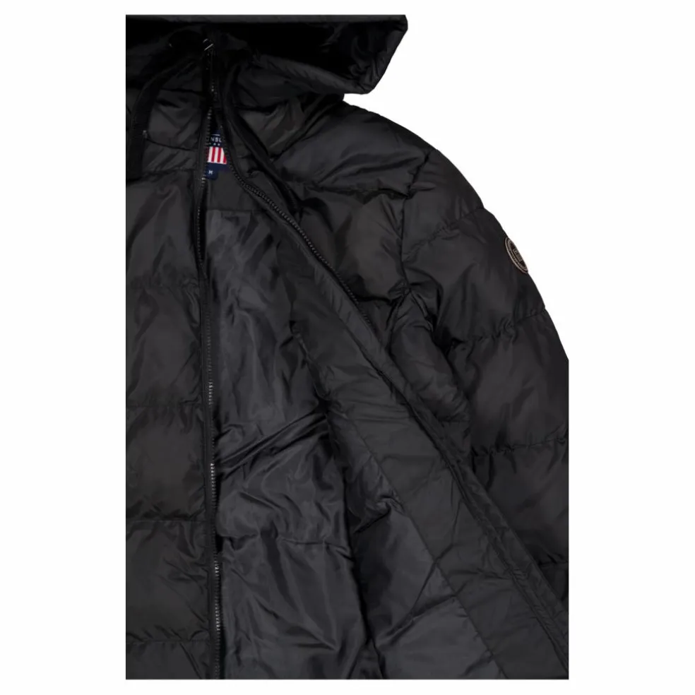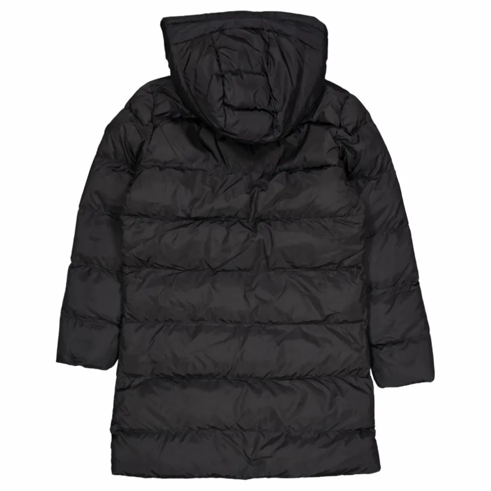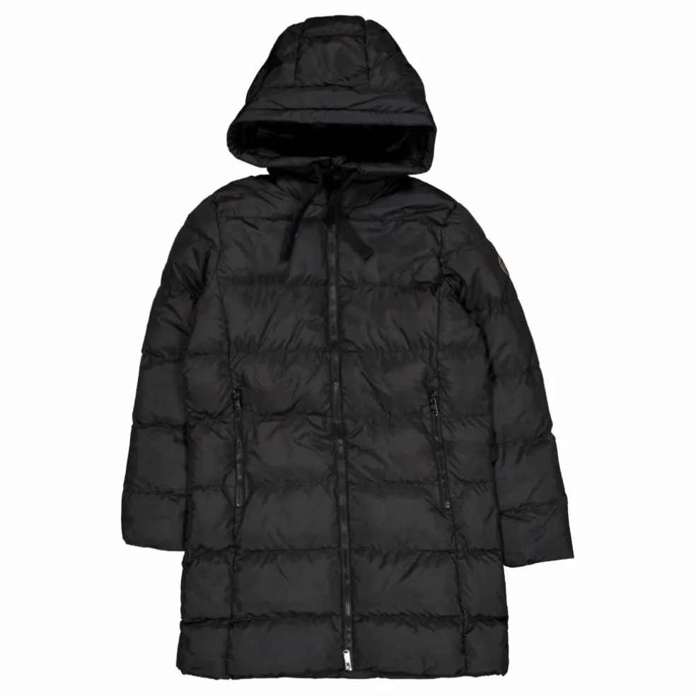 Lång varm vinterjacka, med feminina detaljer. Tvåvägsdragkedja och slits i sidsömmen för extra rörelse. Huva med avtagbar päls. 100 % polyester