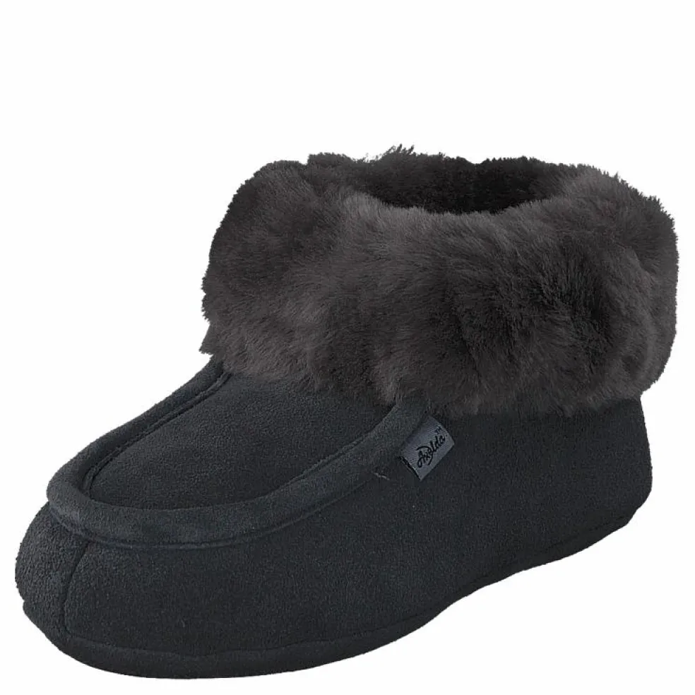 Klassisk toffel med vår mycket populära halkfria sula. Dubbla material i ovandel för bättre passform och stabilitet. Toffeln behåller formen mycket bra. Skönt fårskinnsfoder invändigt, mjuk foam i fotbädd för ökad komfort. Kragen går att vika upp. Finns i fler färger!