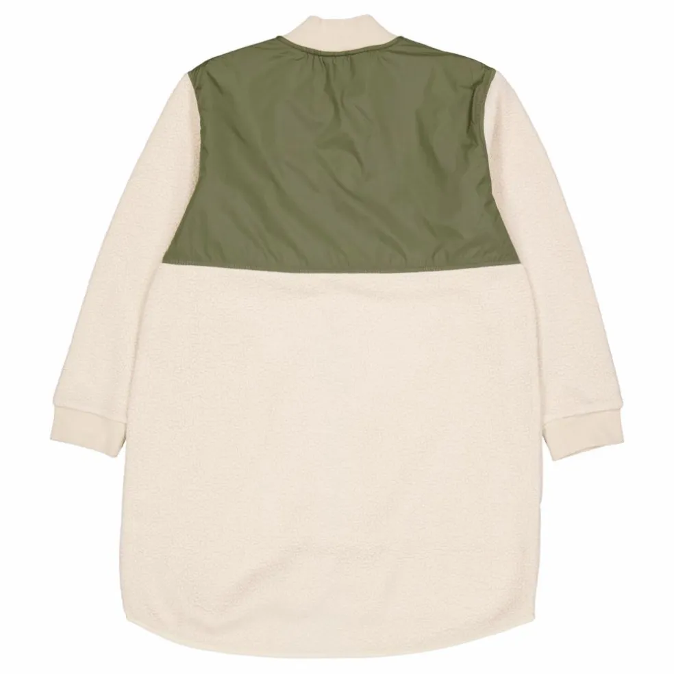 Long Pile Jacket är ett snyggt plagg som kan användas både som mellanlager och jacka. Dess knälånga siluett i återvunnen mjuk lugg och vävt återvunnet kontrastmaterial vid ok och fickor gör detta plagg både snyggt och praktiskt. Elastiska och mjuka bindningar, dragkedja och två framfickor. Manschett och krage i återvunnen 2×2 ribb för optimal komfort och mångsidig användning av biten.