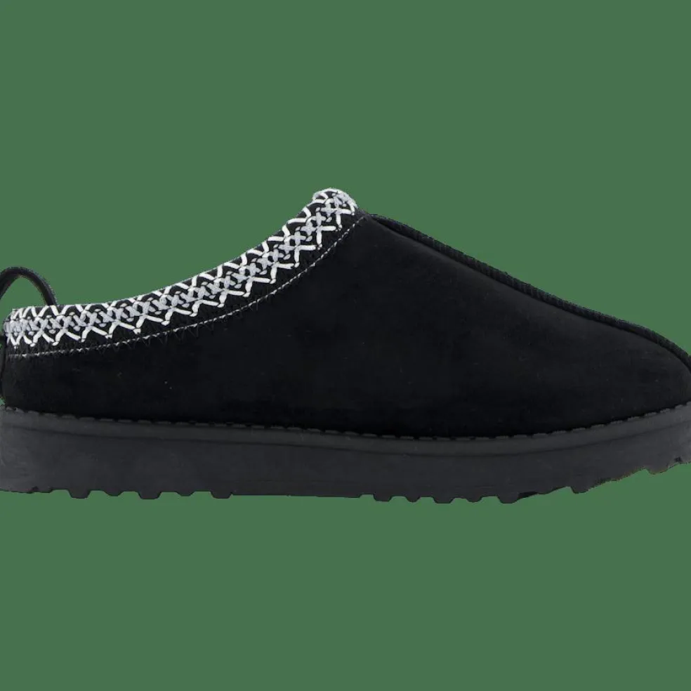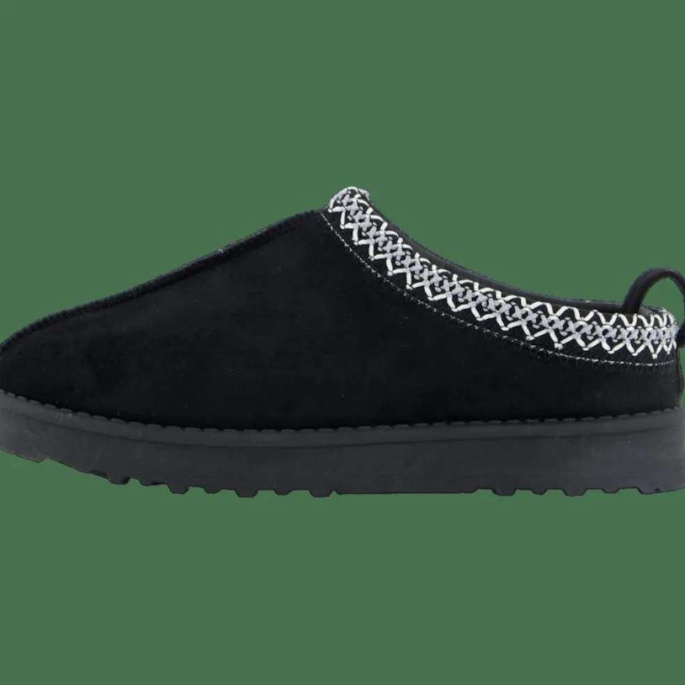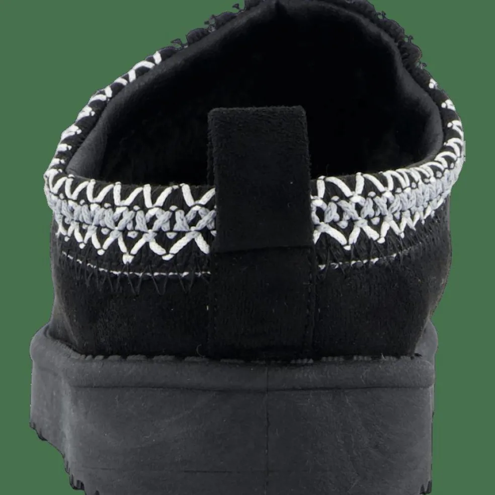 Lova är en varmfodrad sko med en ovandel i mockaimitation. Den har en mjuk insida i fuskpäls och en dekorativ broderad kant upptill. Skon är försedd med en dragögla baktill för enkel på- och avtagning.