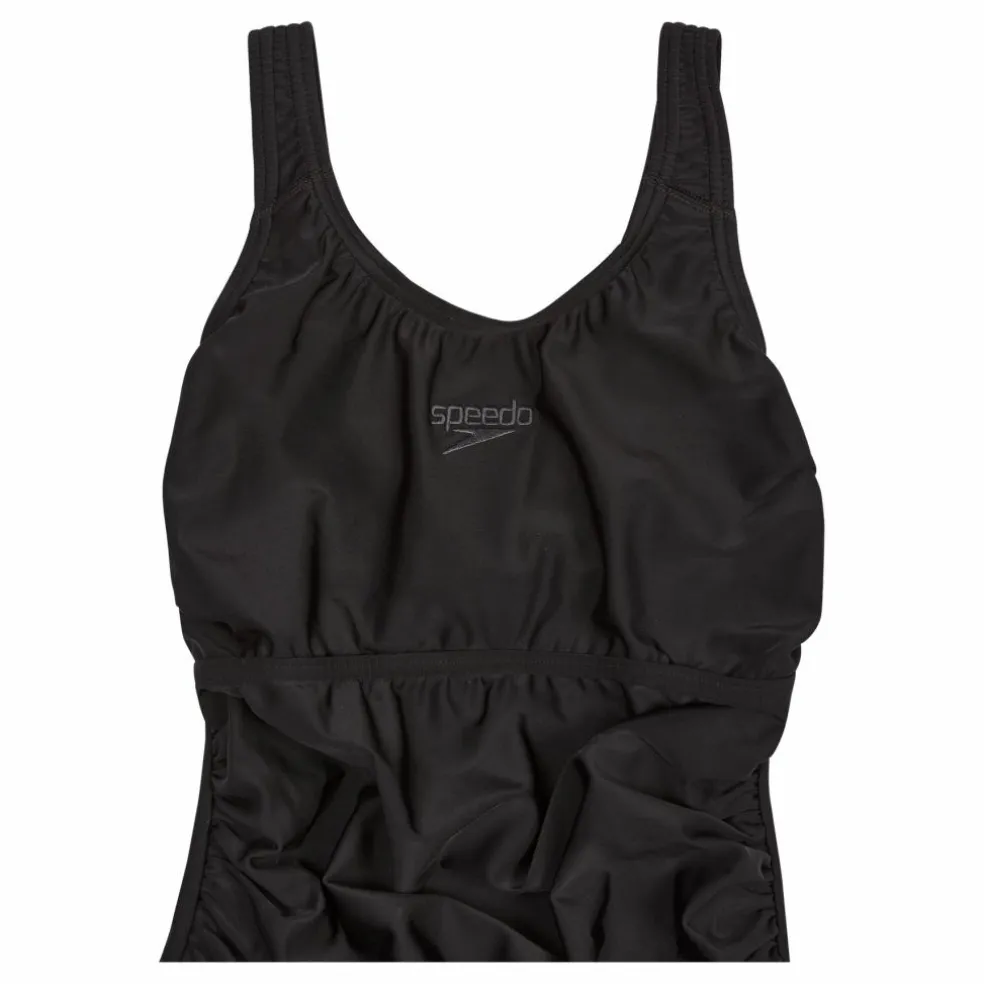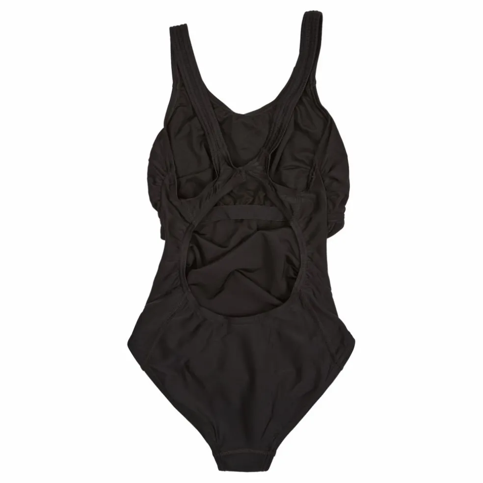 Vår Kickback-baddräkt i klassisk svart har en högre rygg och bysthylla som hjälper till att stödja bysten under träning. Tillverkad av vårt hållbara ECO Endurance+-tyg, är det snabbtorkande och 100 % klorbeständigt. Dessutom är ett av garnerna i det här tyget tillverkat av 100 % avfall från konsumenter, såsom återvunna plastflaskor.