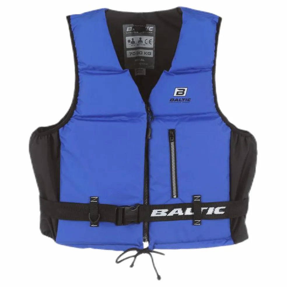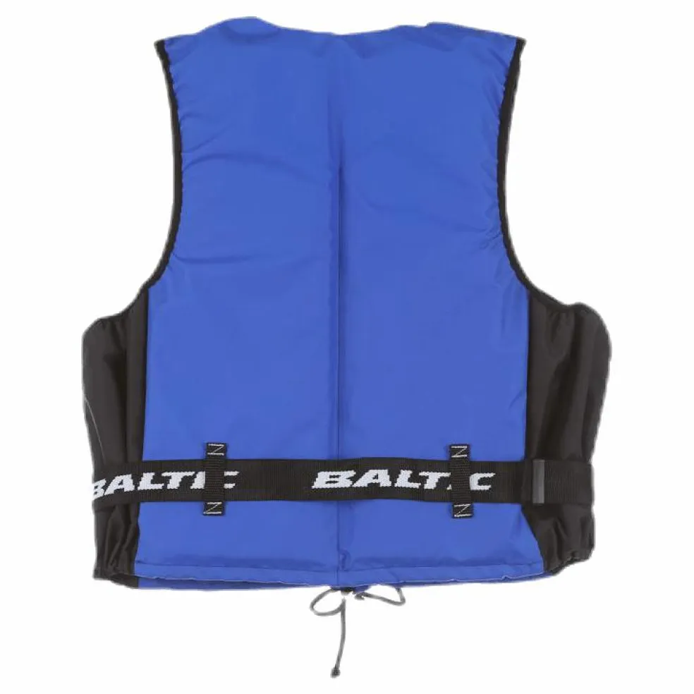 Flera delningar i flytmaterialet för bra passform. Dragkejdeficka, midjeband och knytsnören som håller västen på plats.