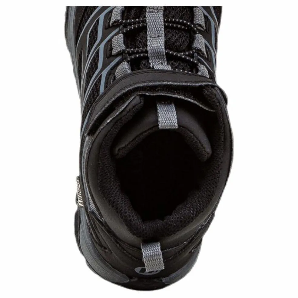 Smidig vattentät mid-känga med sportigt utseende för aktiva barn. Stabil och dämpad modell med kardborreknäppning. Slitstark yttersula av gummi och förstärkt/dämpad mellansula, överdel med M-Select DRY gör den 100% vattentät, förstärkt syntetmaterial och mesh. Merrell Select Gripsula.