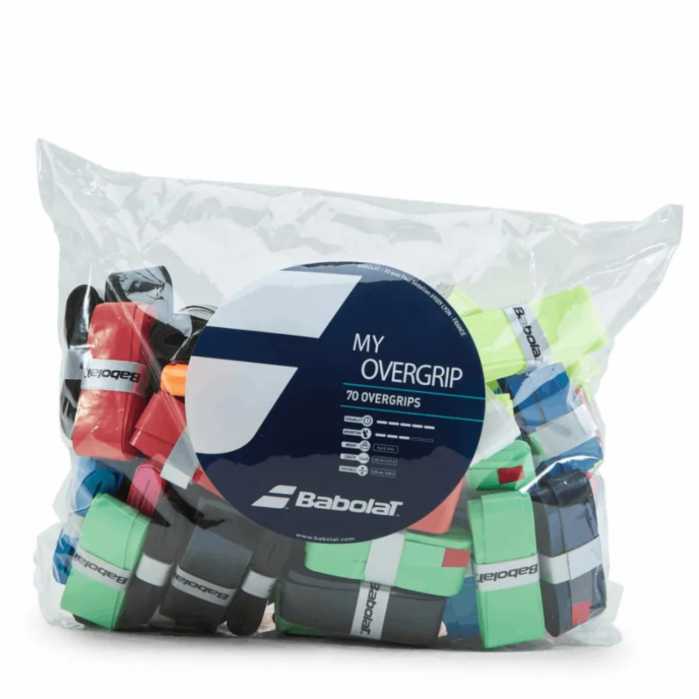 Babolat har tagit fram ett 70-pack med grepp som finns i en stor variation av färger. Greppen är utvecklade för att vara absorberande, hållbara och till ett mycket överkomligt pris.