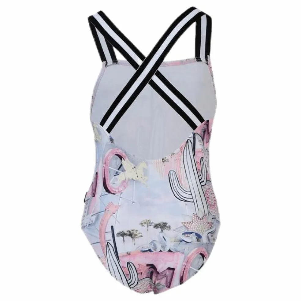 Snygg baddräkt med en digitaltryckt och breda axelband. Produkten har UV-skydd 50+ och har testats både före, under och efter användandet.