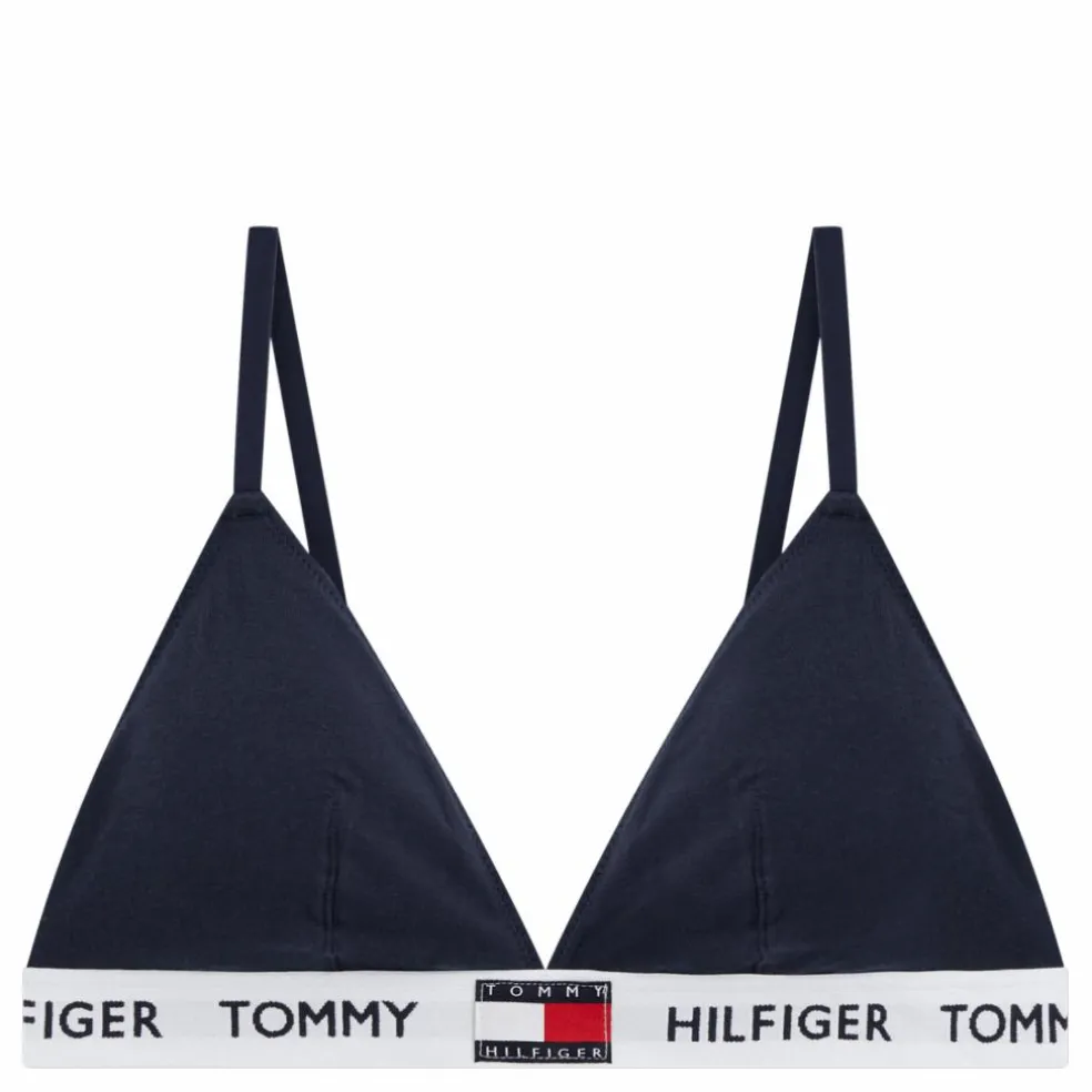 Tommy Hilfigers VADDADE TRIANGLE BH, CHS är gjord av bomull och har ett förhållande på 64% bomull, 27% återvunnen bomull och 9% elastan. Den finns i blått.