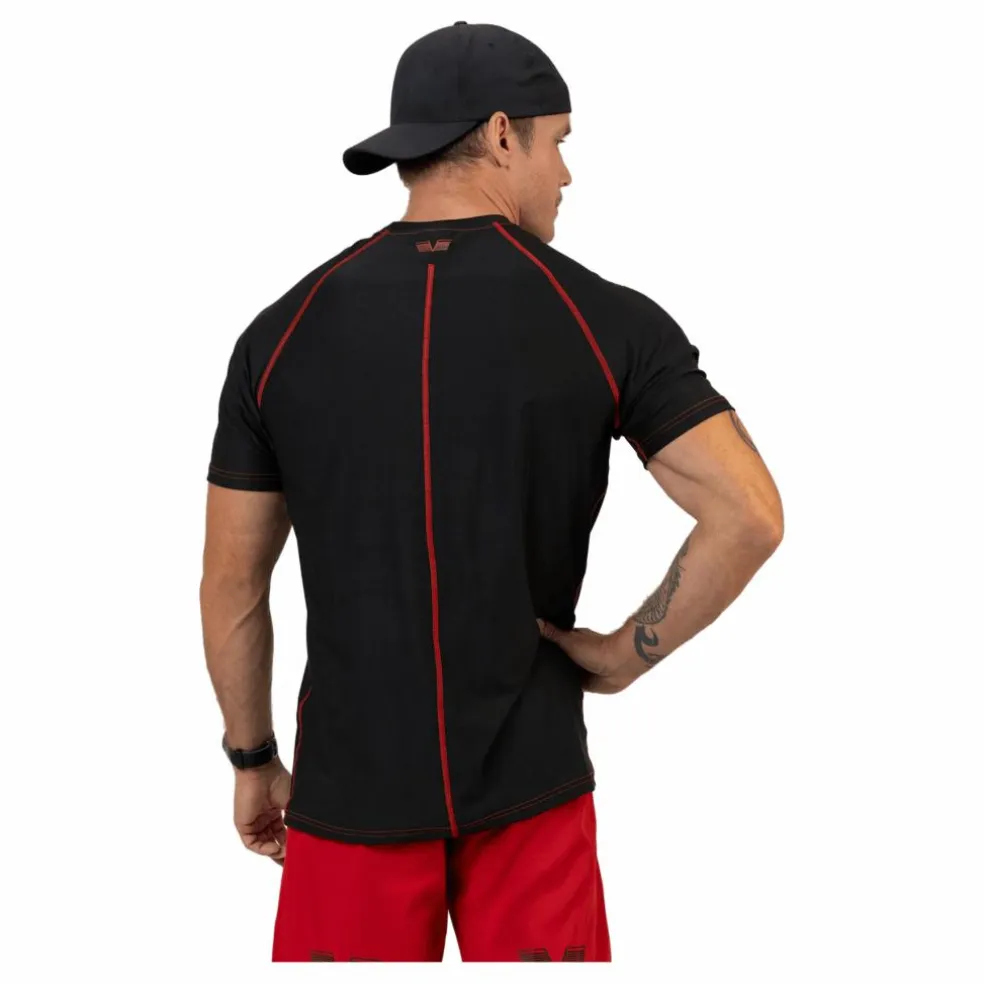 Svart kortärmad funktionsskjorta med Gavelo-logga i rött. Tillverkad av stretchigt material som andas och är perfekt för gym och crossfit, och håller dig torr och bekväm.