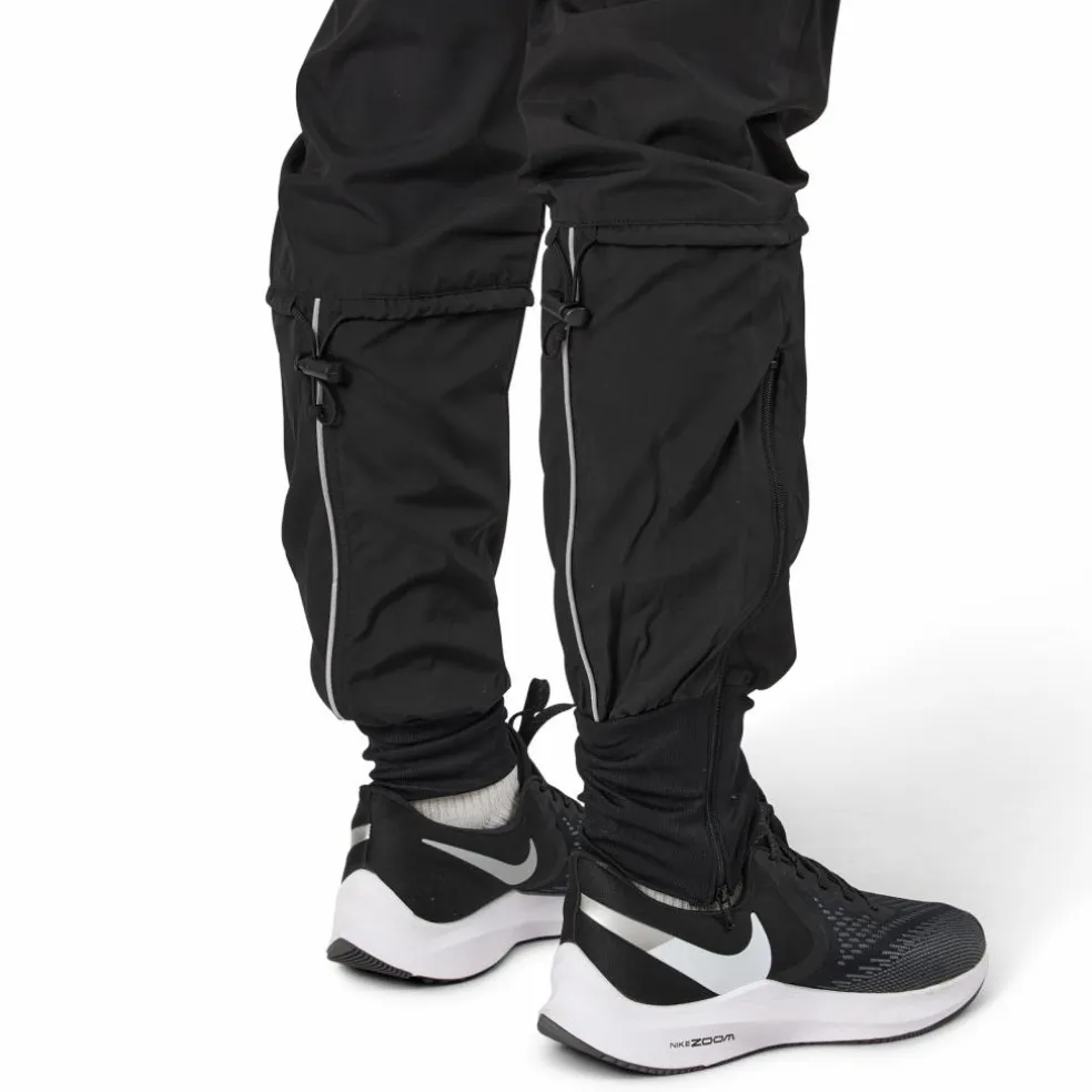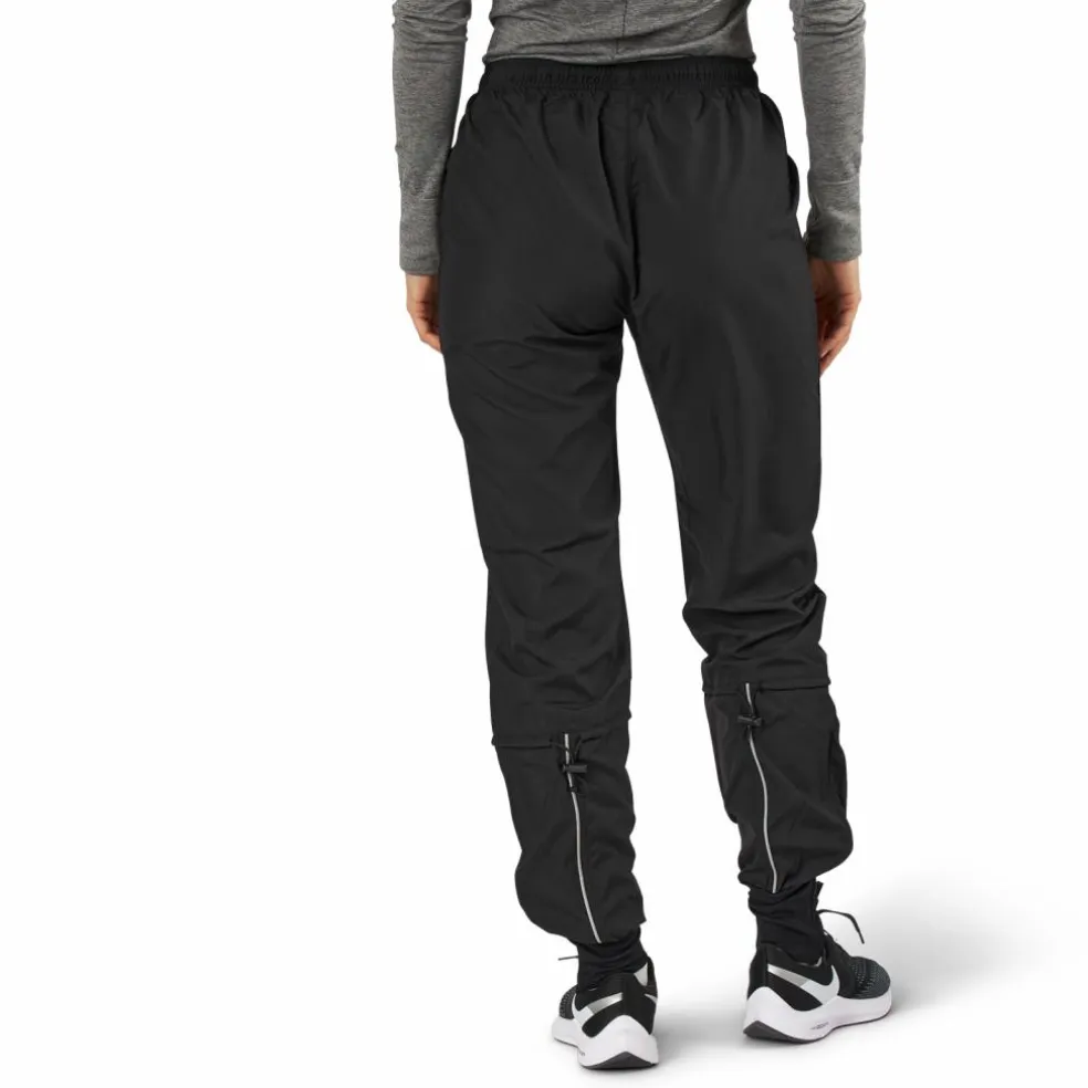 Vindtät byxa med dragsko under knäet för bättre löpkänsla. Långa muddar, dragkedjor i benavsluten, en dragkedjaförsedd ficka på ena benet och reflexdetaljer. Tillverkad i ett lätt och smidigt material. 100% polyester. Dammodell.