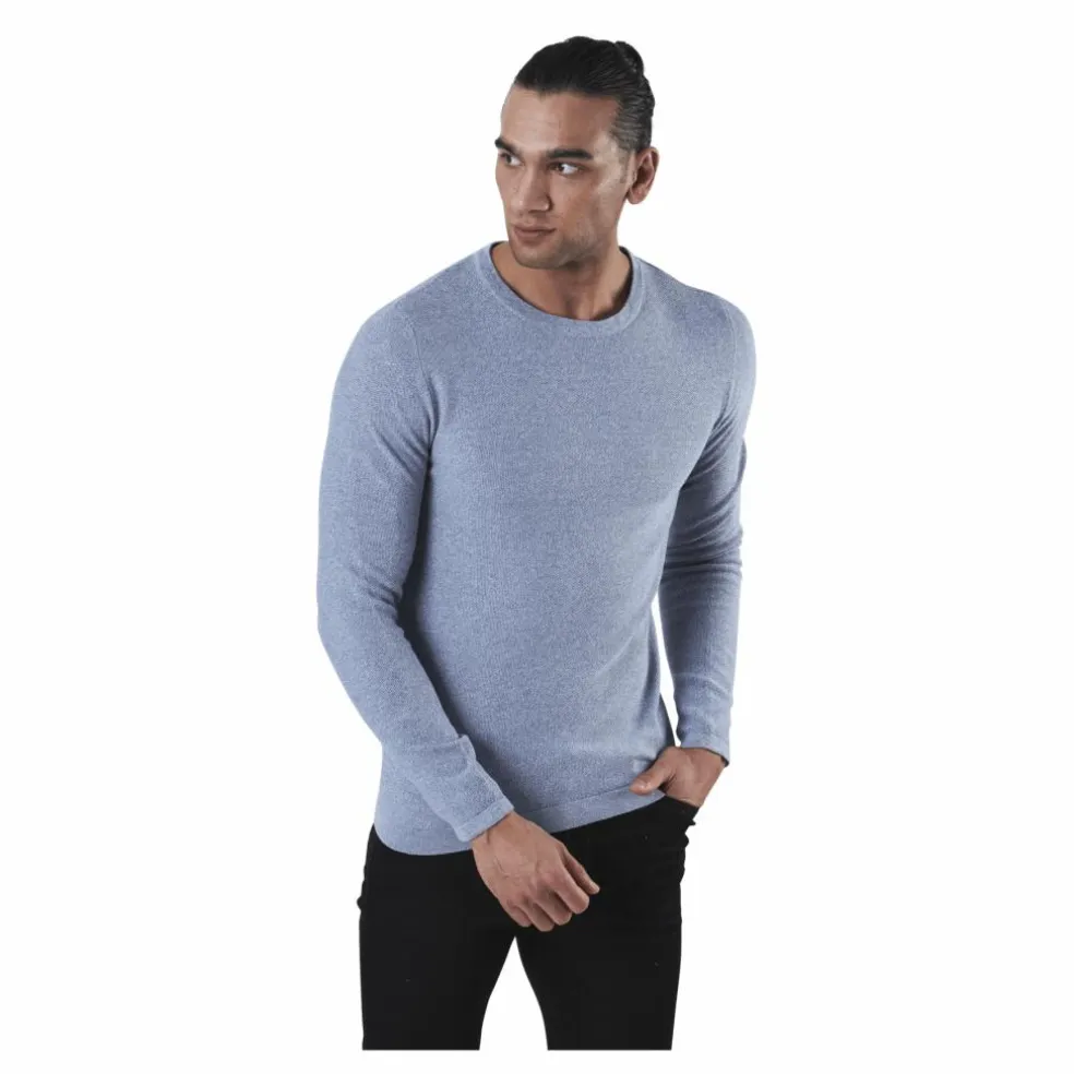 Detta stickade plagg är tillverkat av 100% bomull och kan tvättas i maskin. I paketet ingår ett blått stickat plagg med rund hals, skuren i en enkel siluett för praktiska skull.