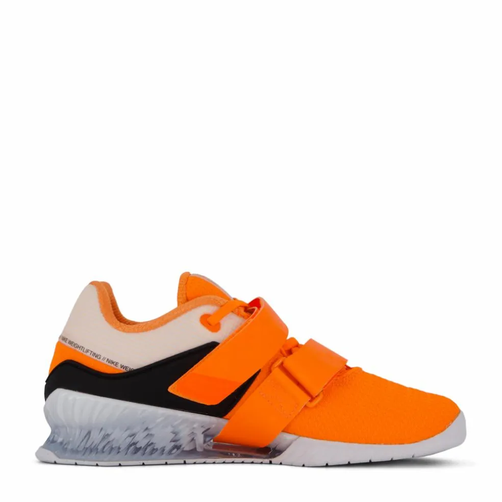 Lyft ditt tyngdlyftningsspel med Nike Romaleos 4 – den ultimata lyftskon designad för både män och kvinnor. Denna livfulla orange och svarta färgsättning kräver uppmärksamhet samtidigt som den levererar oöverträffad prestanda och stöd.Romaleos 4 är utformad med noggrann uppmärksamhet på detaljer och har en slitstark syntetisk ovandel som säkert låser fast din fot under intensiva lyftsessioner. Det innovativa dubbla bandsystemet säkerställer en skräddarsydd passform, så att du kan hitta den perfekta nivån av stöd och stabilitet.Undertill ger en stadig yttersula i gummi ett exceptionellt grepp på plattformen, vilket ger dig självförtroende att tänja på dina gränser. Den platta, stabila sulan främjar optimal kraftöverföring, så att du kan maximera varje lyft. En utbytbar innersula låter dig finjustera känslan för att passa dina önskemål.Oavsett om du är en erfaren styrkelyftare eller precis har börjat din tyngdlyftningsresa, levererar Nike Romaleos 4 prestanda och stil som hjälper dig att krossa dina PR. Kliv upp till baren med självförtroende och vet att du har bäst i att lyfta skor som stödjer varje rep. Dominera ditt nästa träningspass eller tävling med det djärva utseendet och oslagbara prestandan hos Romaleos 4.
