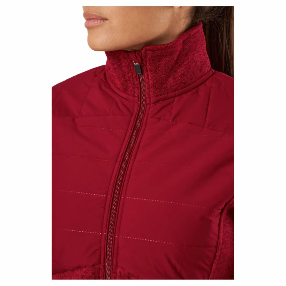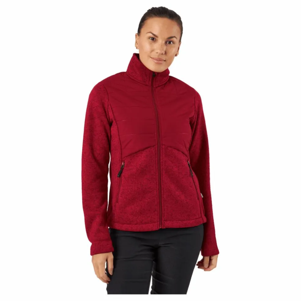 En smidig tvålagersjacka som enkelt kan användas som ett tidigt sensommarplagg eller som höstytterplagg. Sadie-jackan har värmepaneler på bröst, rygg och axlar för att hålla värmen där den behöver den som mest. Utöver panelerna har jackan ett återvunnet stickat material som är både stretchigt och lagom varmt. Det stickade tyget har ett melerat garn i flera matchande färger som ger jackan en modern och sportig look. Värmepanelerna har en flexibel återvunnen polyesterfyllning. Jackan har två midjefickor som är lätta att öppna även om du har handskar på dig. Längst ner på jackan finns en elastisk snöre med stoppknappar.